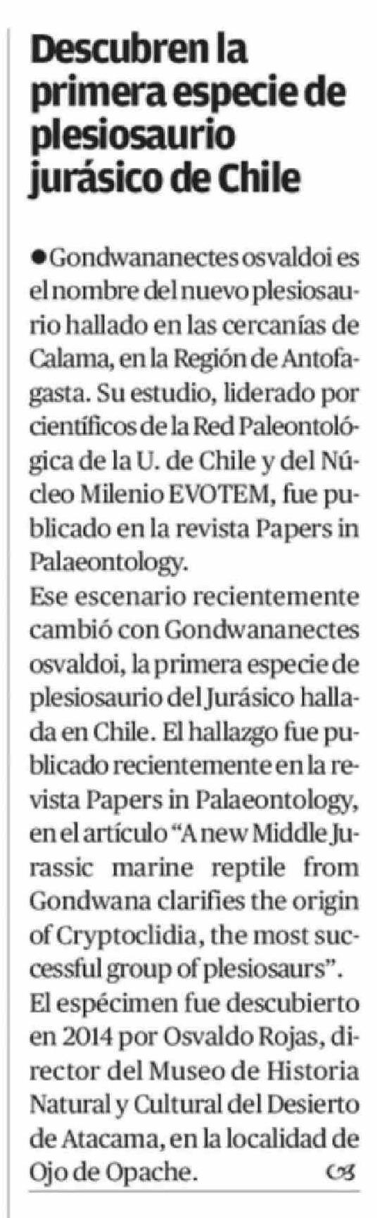 Título: Descubren la primera especie de plesiosaurio jurásico de Chile