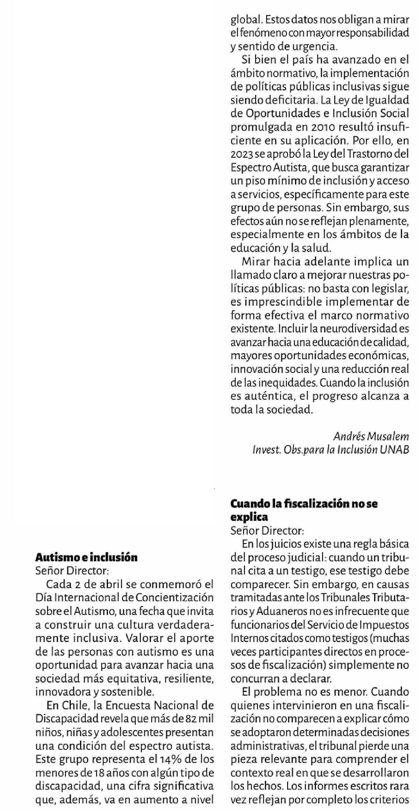 CARTAS: Autismo e inclusión 06-04-2026 La Discusión |