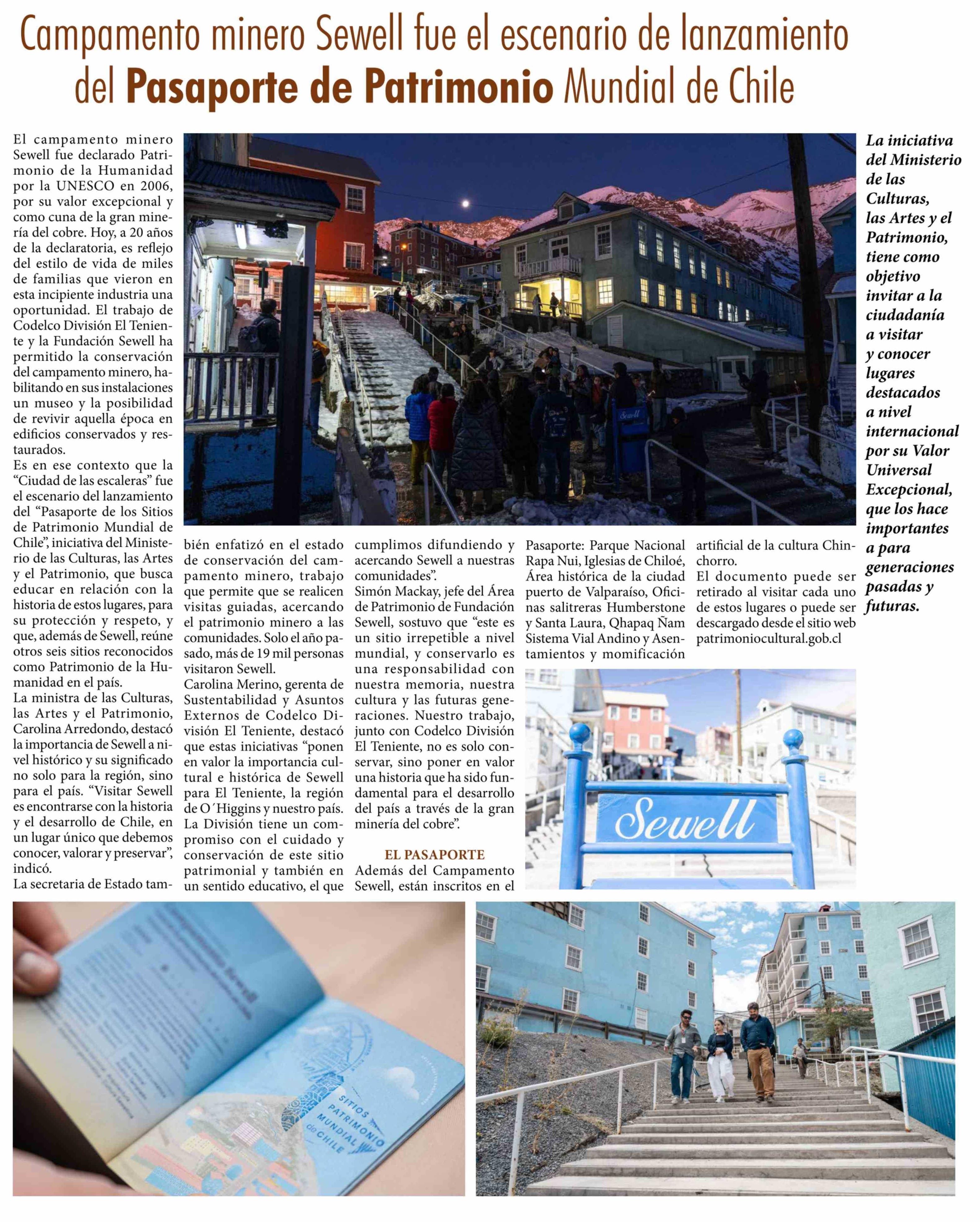 Campamento minero Sewell fue el escenario de lanzamiento del Pasaporte de Patrimonio Mundial de Chile 03-03-2026 El Rancagüino |