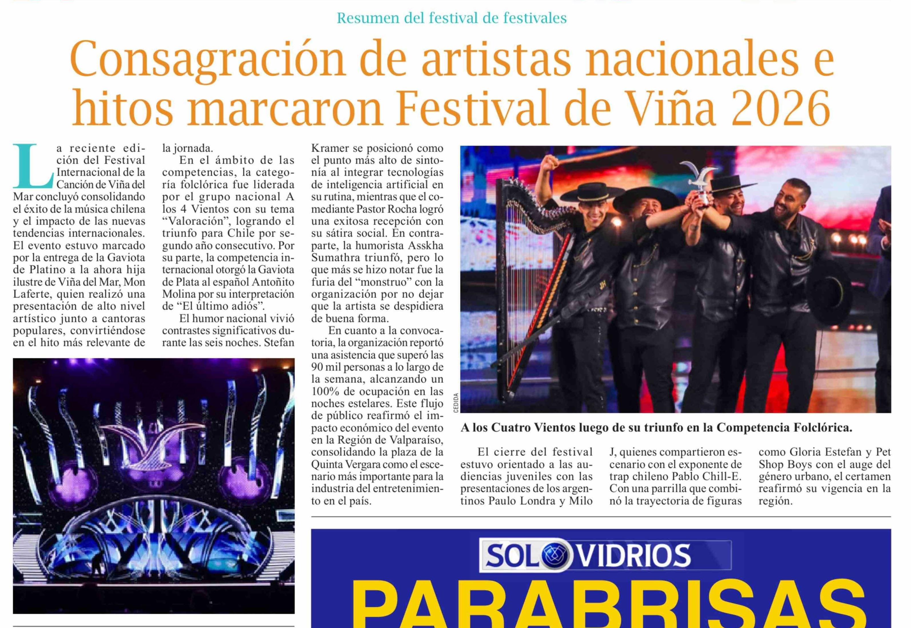 | Título: | Consagración de artistas nacionales e hitos marcaron Festival de Viña 2026 |