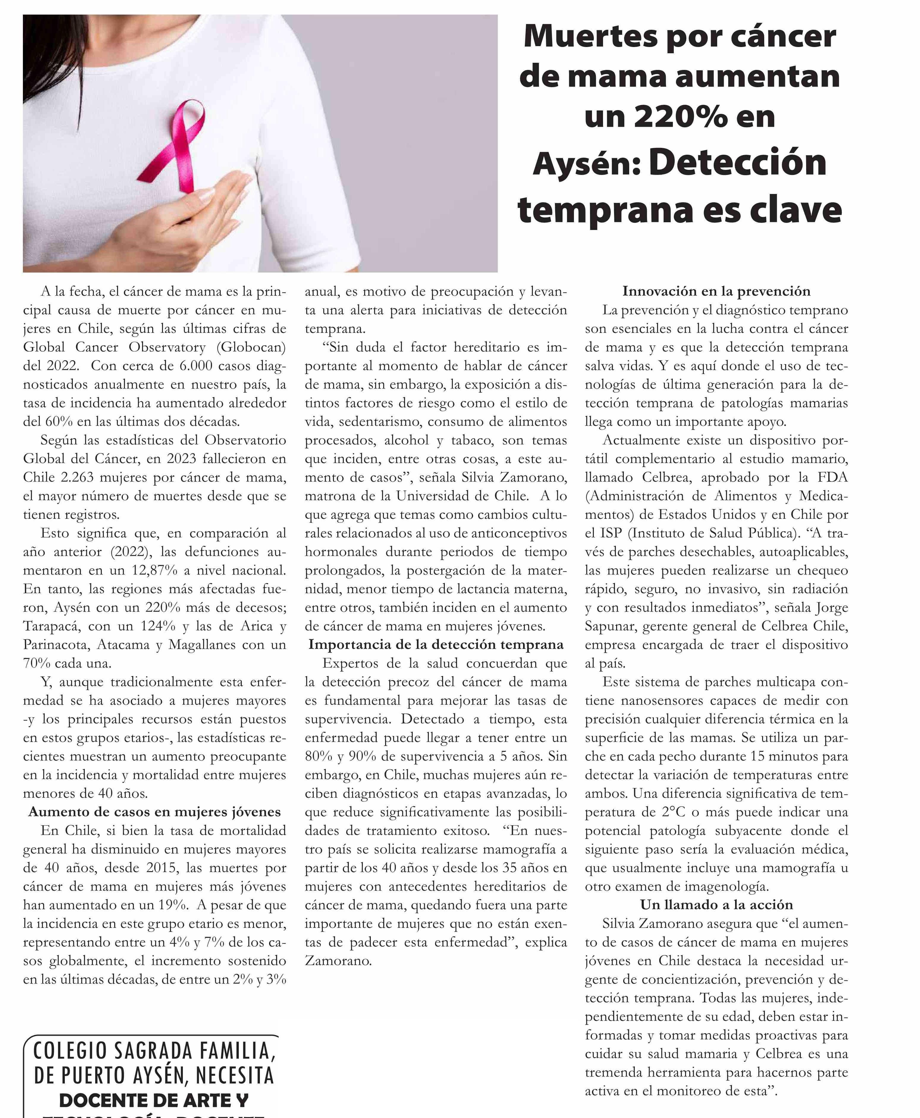 | Título: | Muertes por cáncer de mama aumentan un 220% en Aysén: Detección temprana es clave |