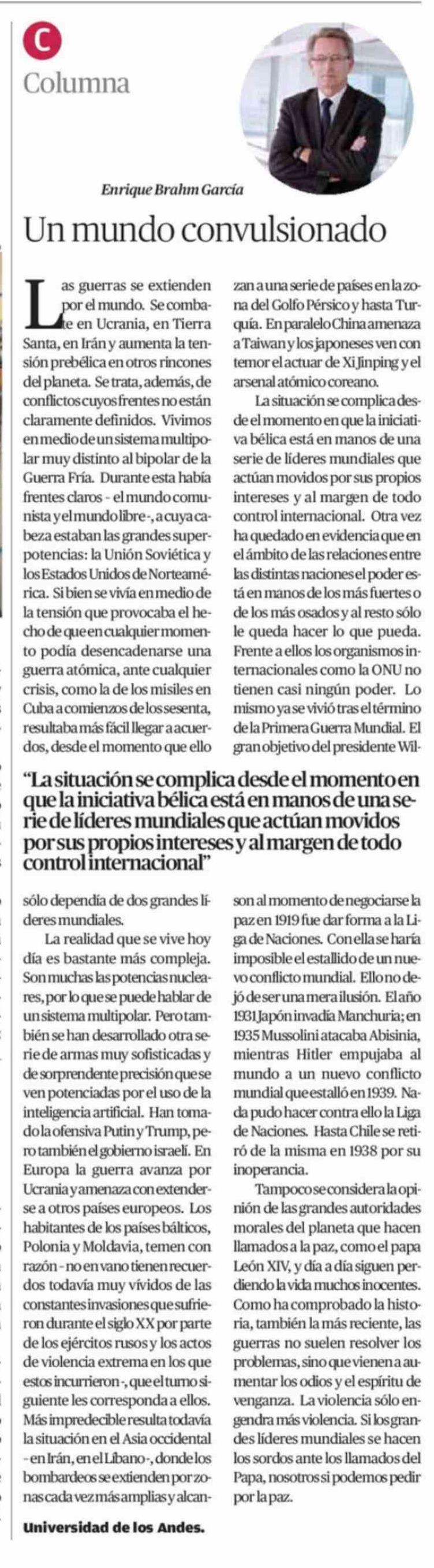 Columnas de Opinión: Un mundo convulsionado 22-03-2026 El Mercurio de Calama |