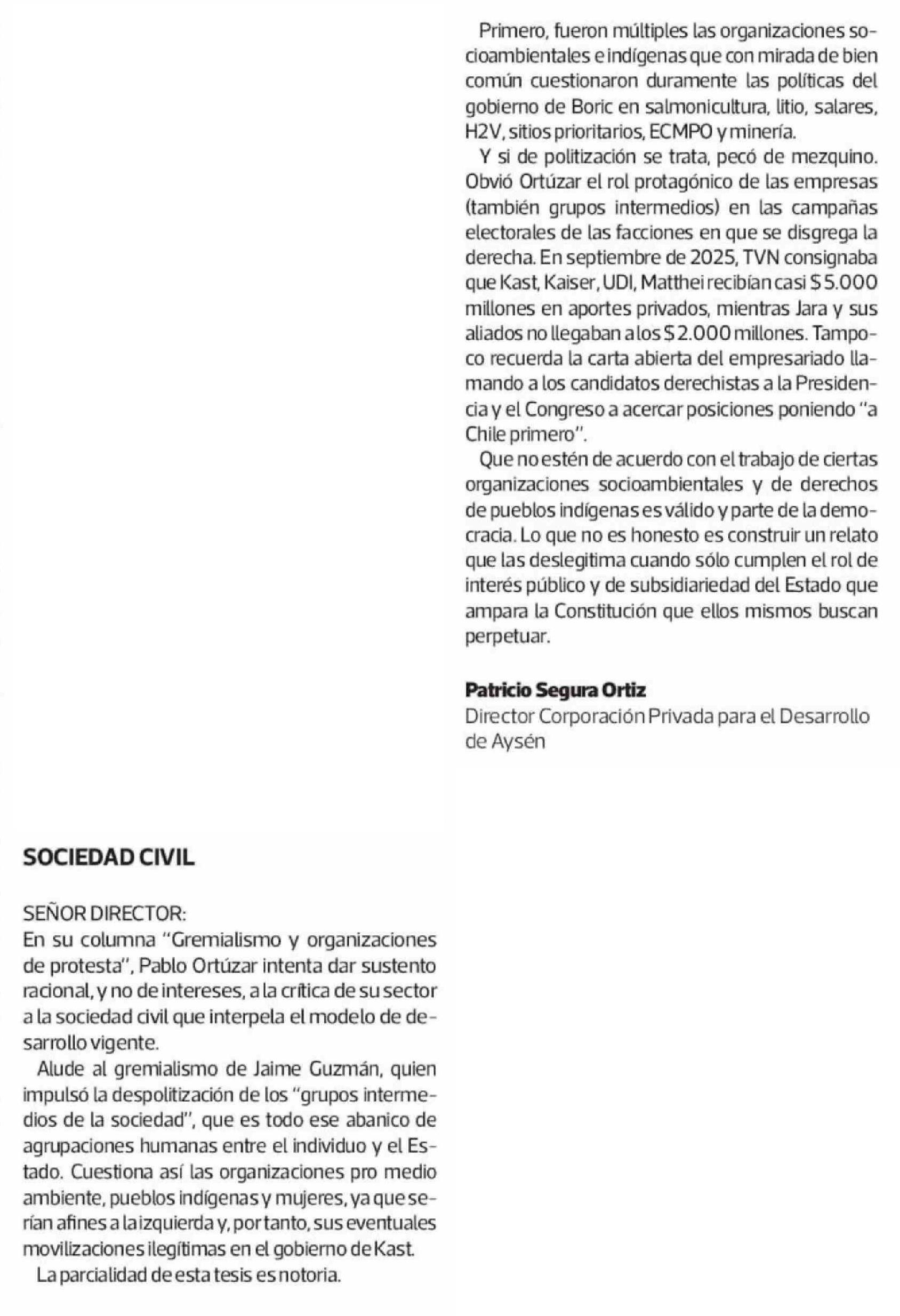 Cartas: SOCIEDAD CIVIL 20-03-2026 La Tercera |