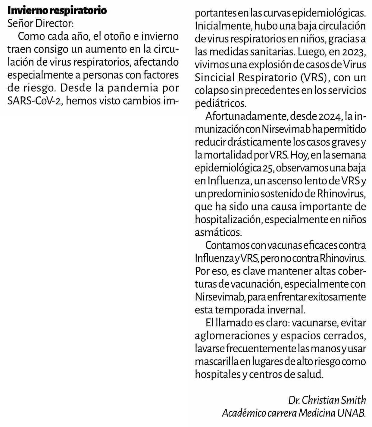 CARTAS: Invierno respiratorio 18-06-2025 La Discusión |