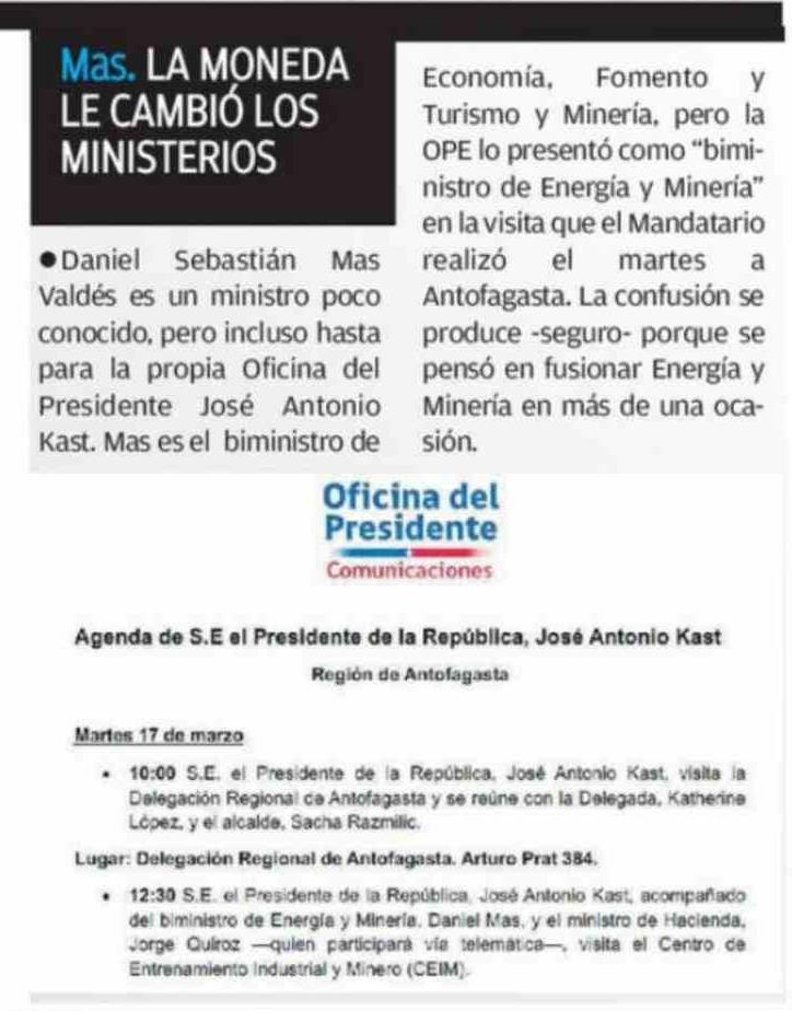 Mas. LA MONEDA LE CAMBIÓ LOS MINISTERIOS 22-03-2026 El Mercurio de Antofagasta |