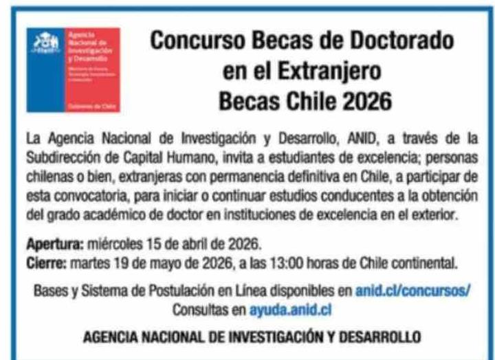 Título: Aviso Licitaciones: Concurso Becas de Doctorado en el Extranjero Becas Chile 2026