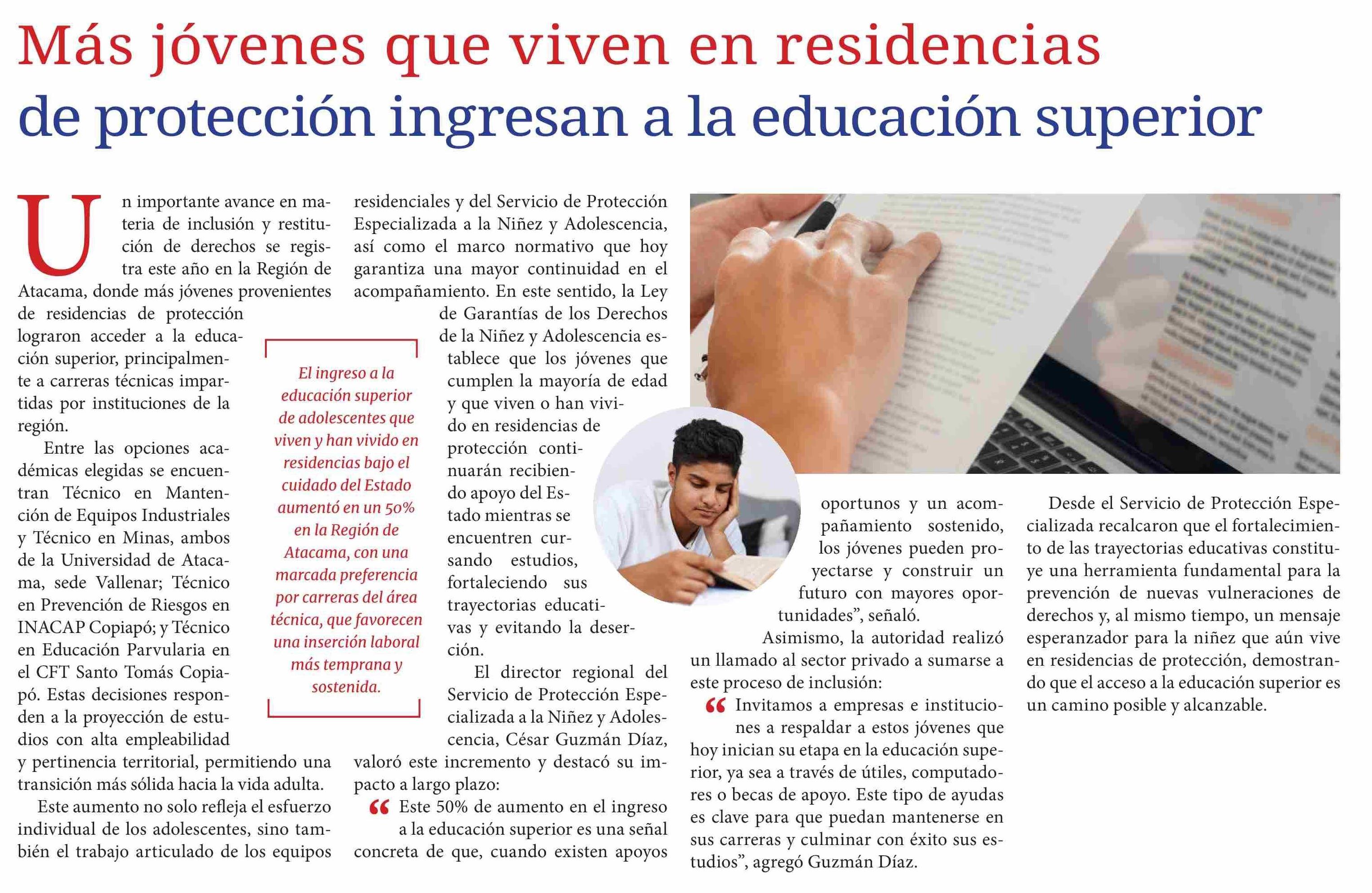 Título: Más jóvenes que viven en residencias de protección ingresan a la educación superior
