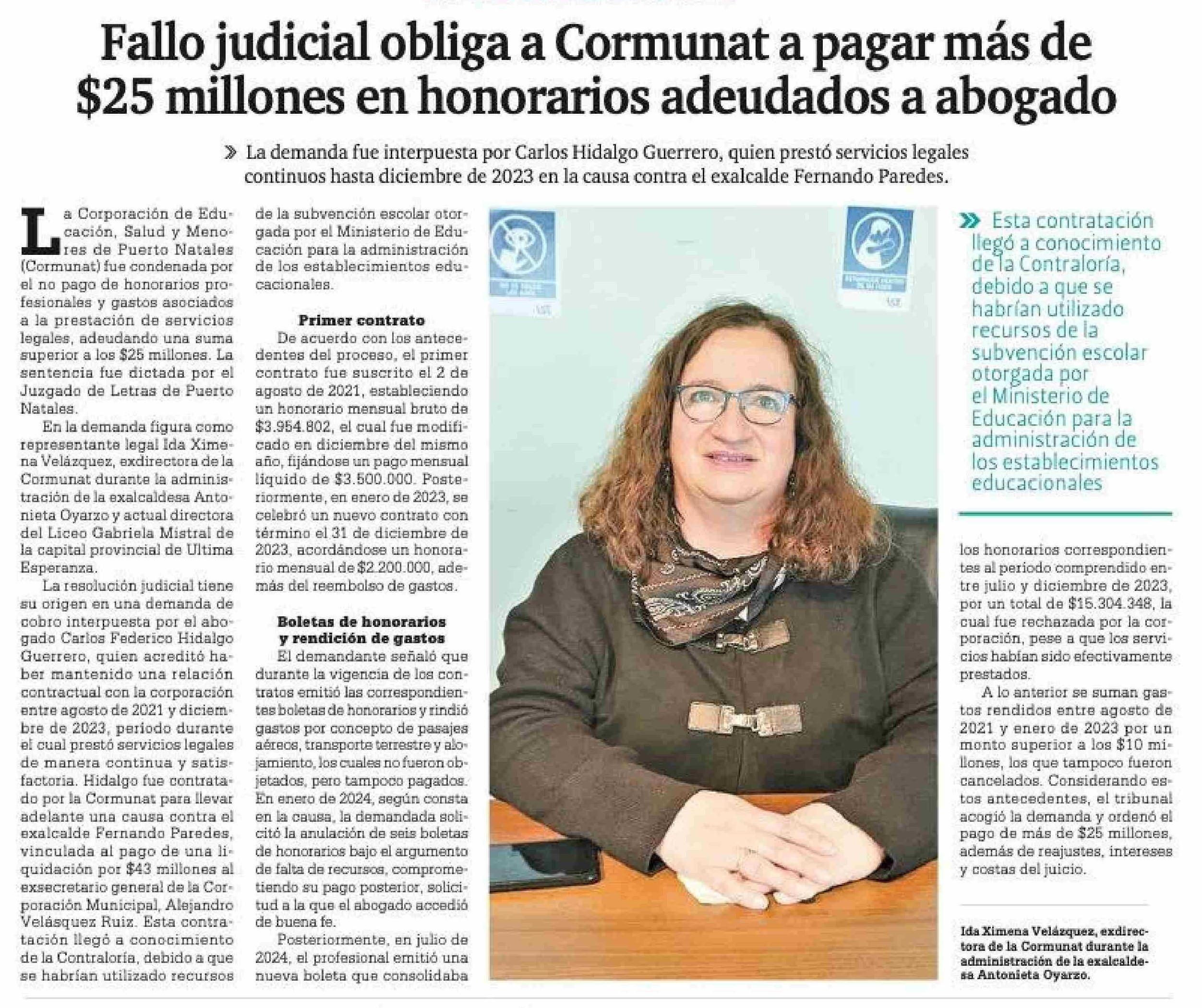 Fallo judicial obliga a Cormunat a pagar más de $25 millones en honorarios adeudados a abogado 07-01-2026 La Prensa Austral |