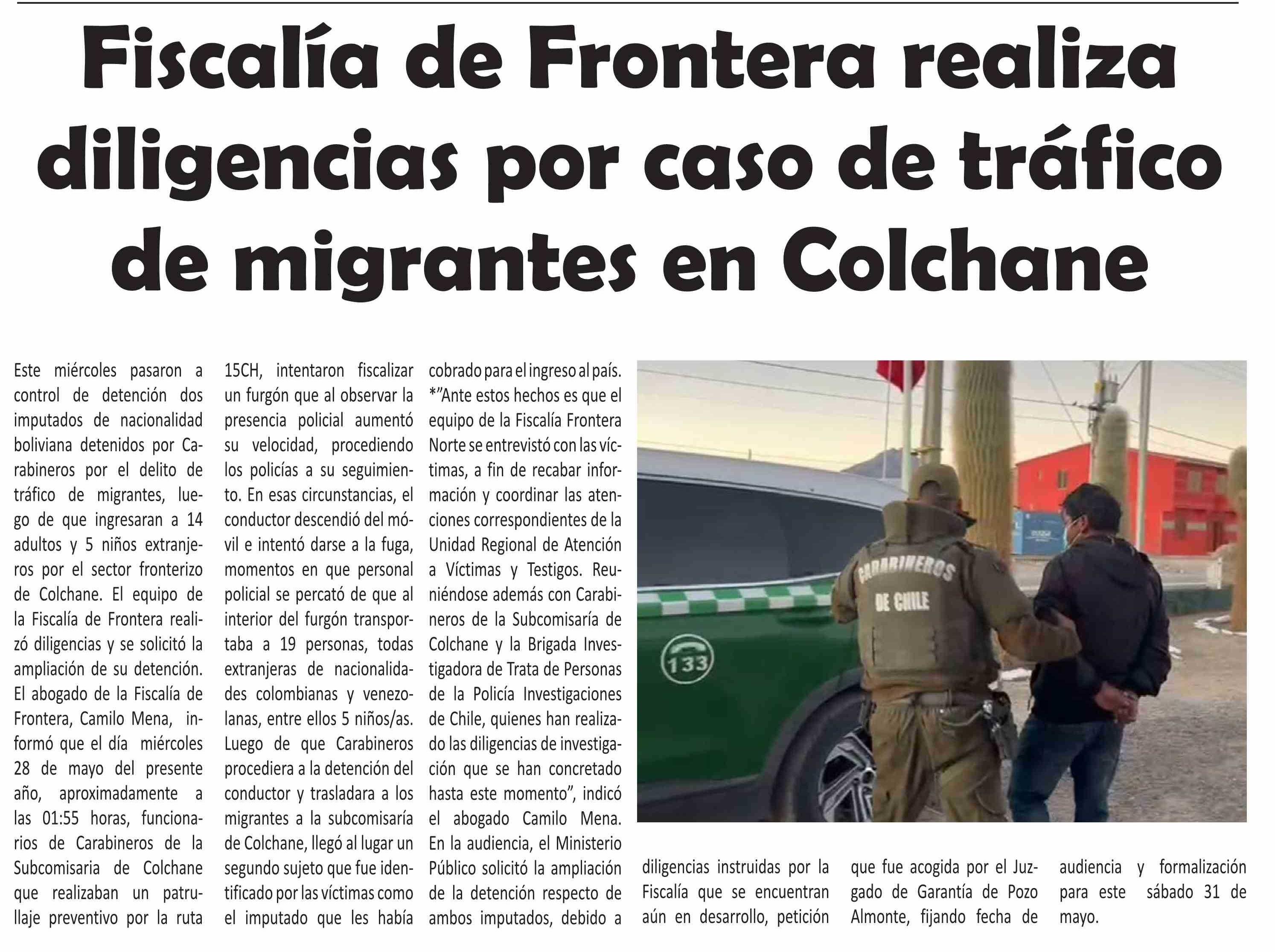 | Título: | Fiscalía de Frontera realiza diligencias por caso de tráfico de migrantes en Colchane |