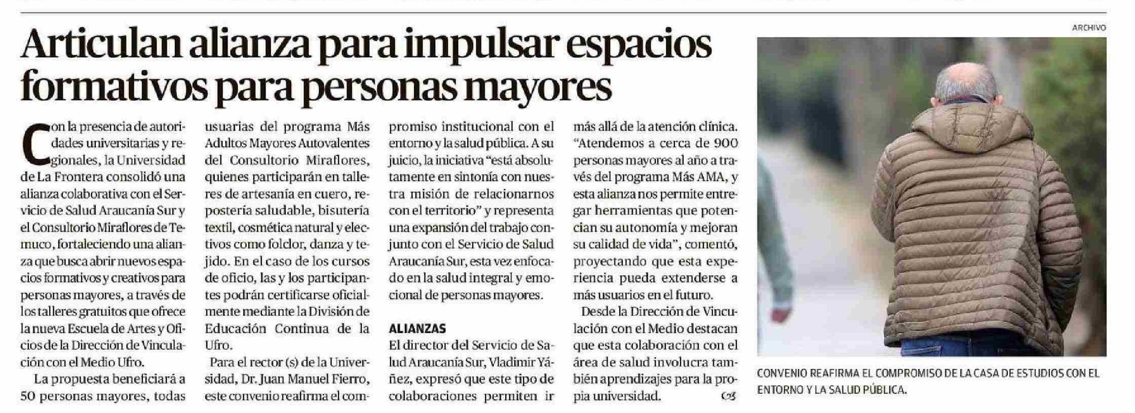 Articulan alianza para impulsar espacios formativos para personas mayores 27-05-2025 El Austral de la Araucanía |