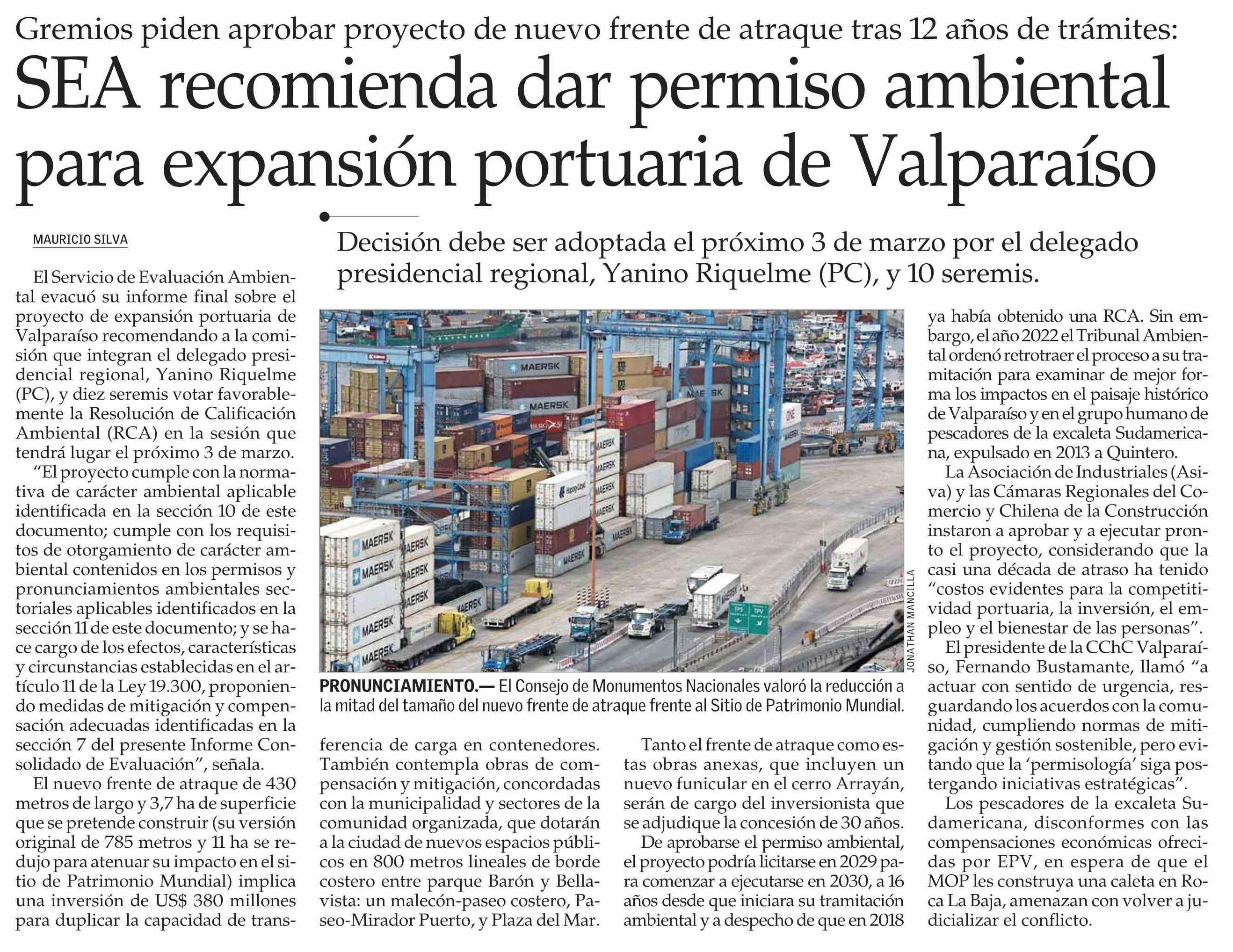 Título: SEA recomienda dar permiso ambiental para expansión portuaria de Valparaíso
