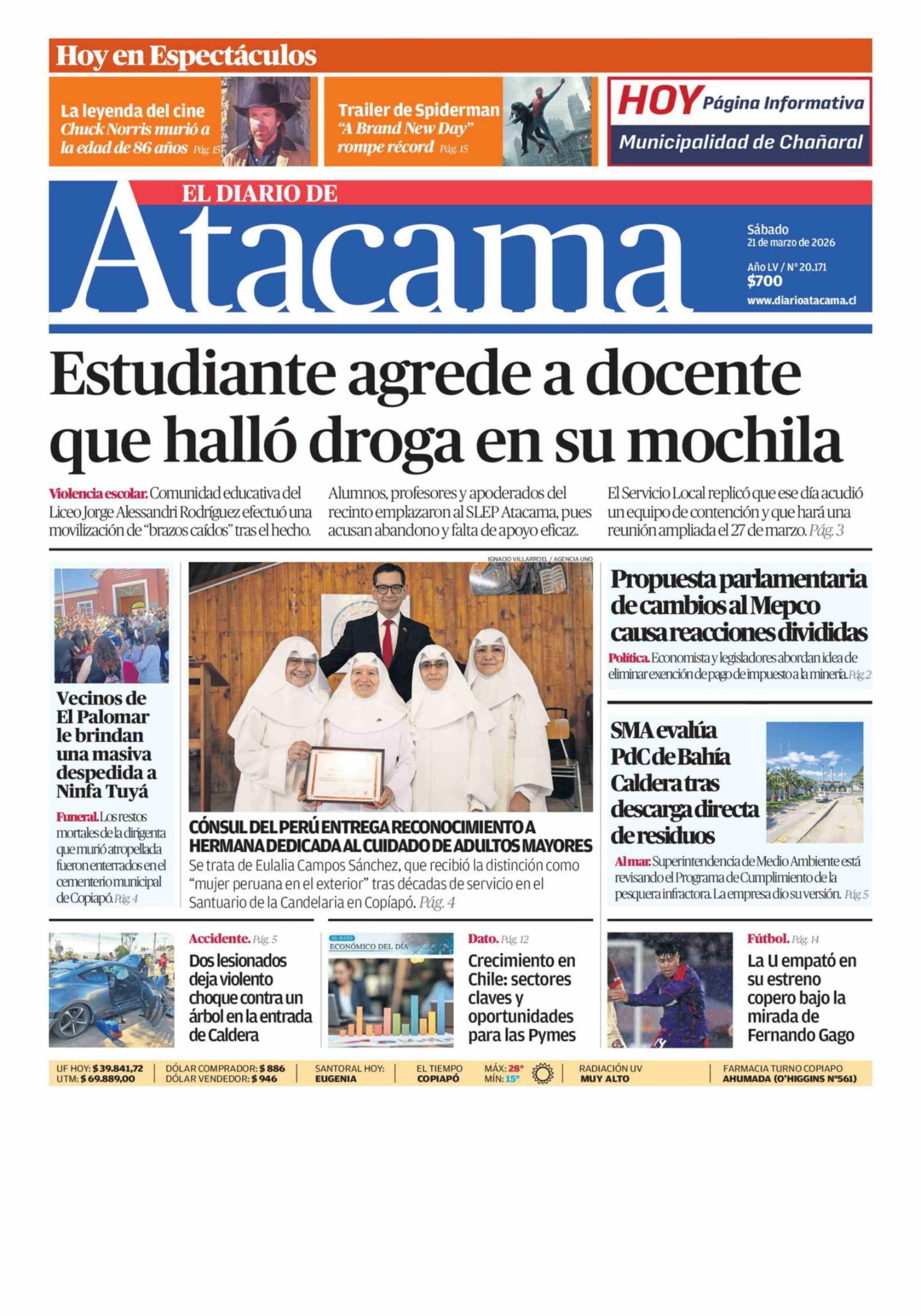 Fecha: 21-03-2026 Sector: Portada Región: Región de Atacama
