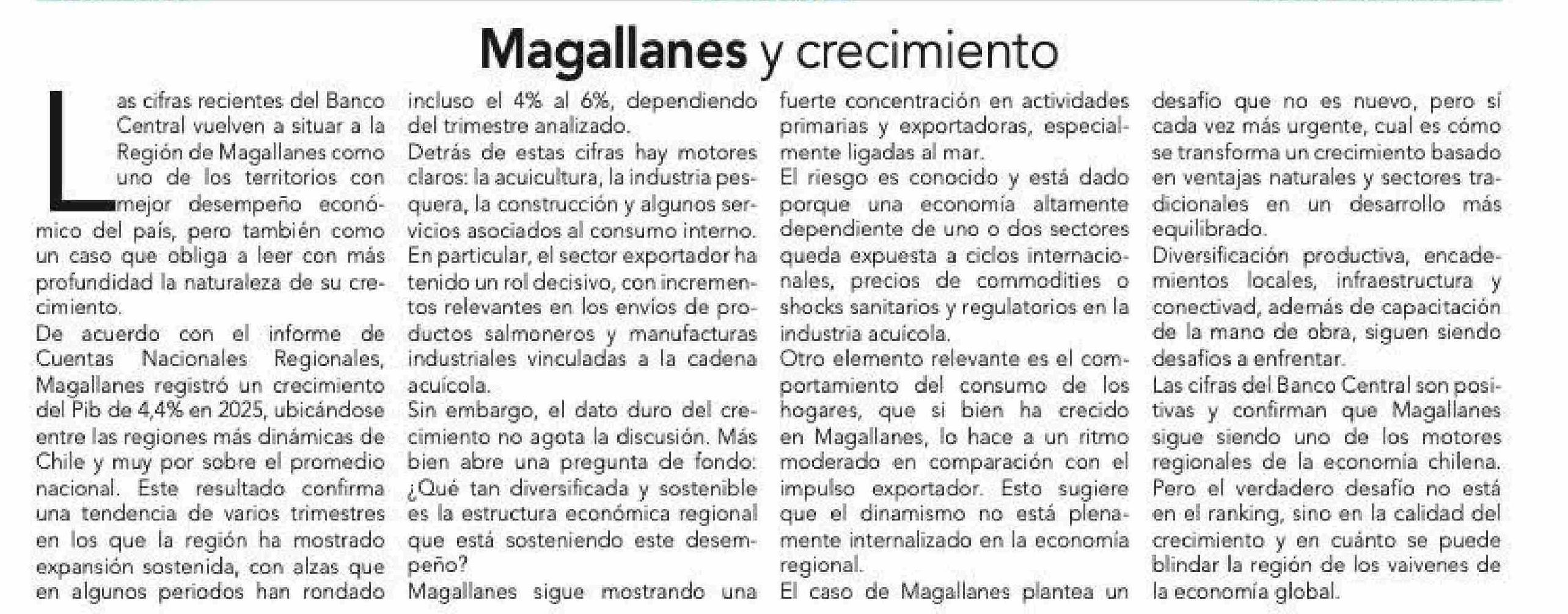 EDITORIAL: Magallanes y crecimiento 25-04-2026 La Prensa Austral |