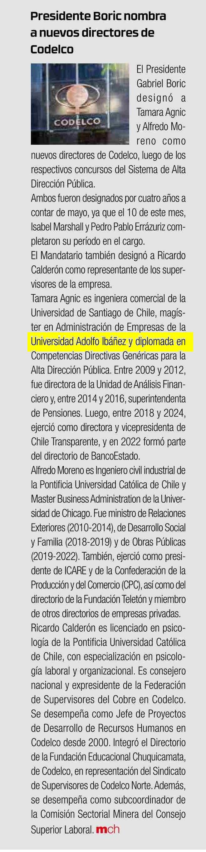 | Título: | Presidente Boric nombra anuevos directores de Codelco |