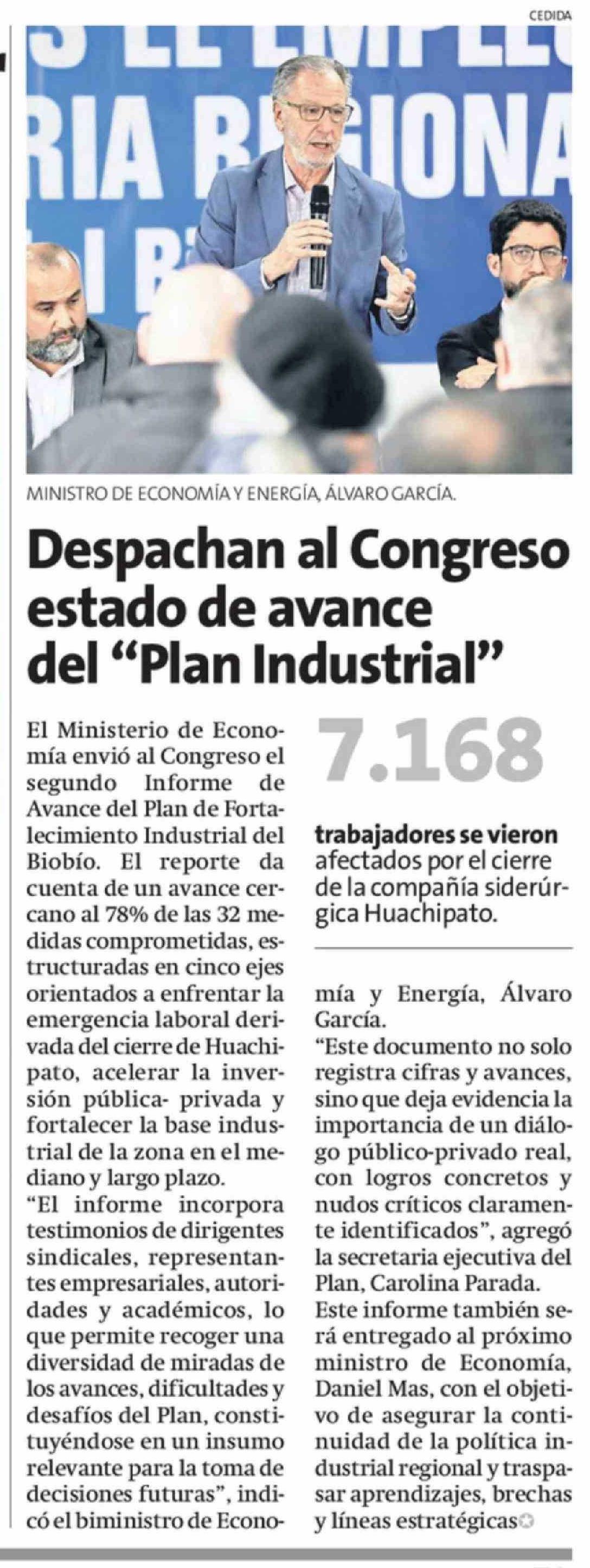 Despachan al Congreso estado de avance del "Plan Industrial" 19-02-2026 La Estrella de Concepción |