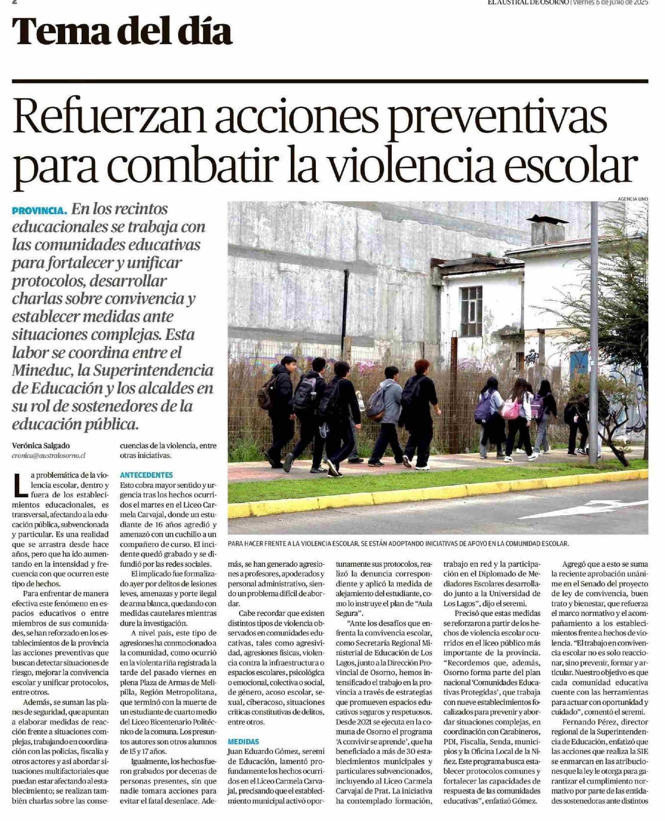 Título: Refuerzan acciones preventivas para combatir la violencia escolar