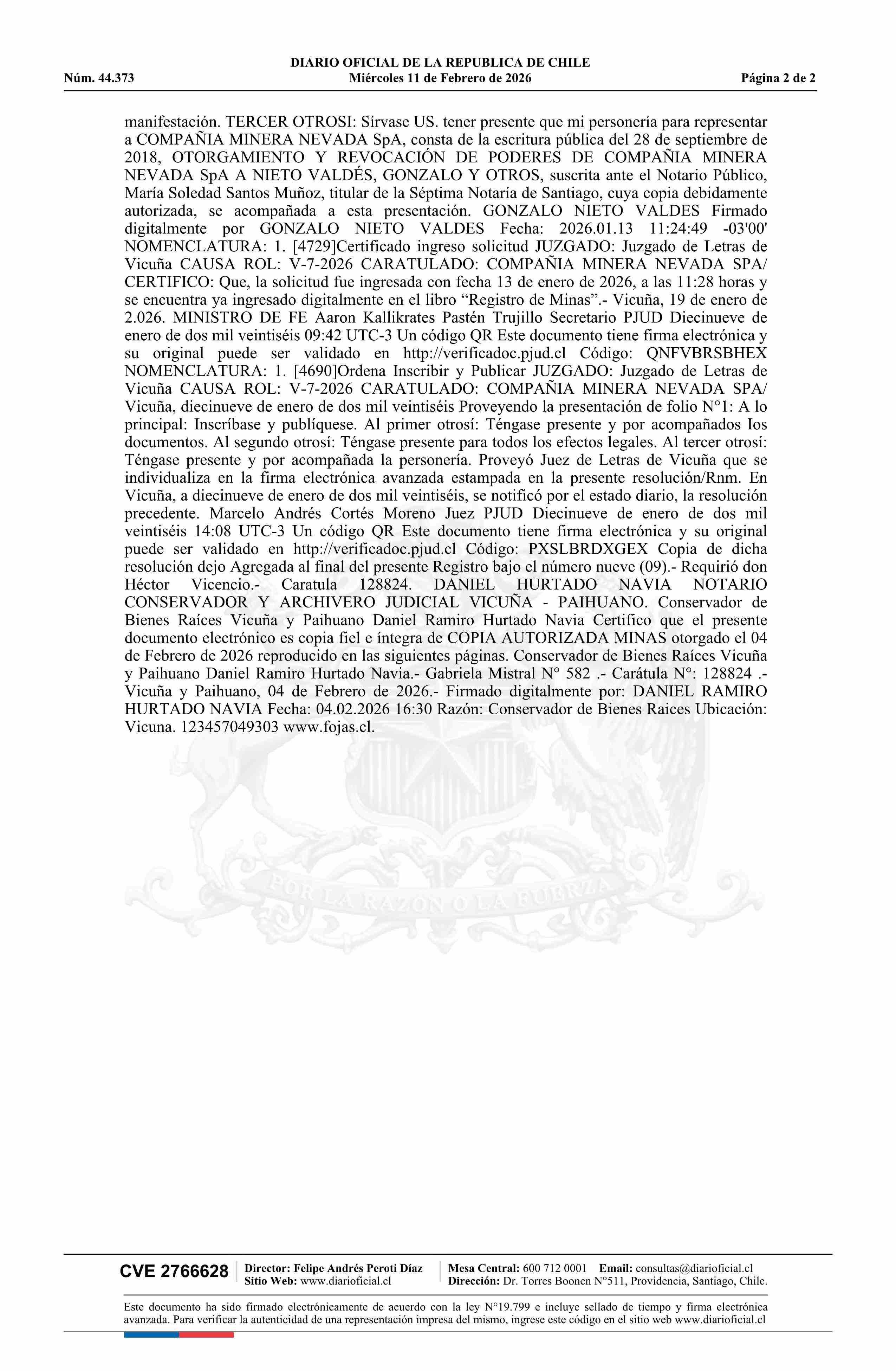 11-02-2026 DIARIO OFICIAL CHILE - BOLETÍN OFICIAL DE MINERÍA