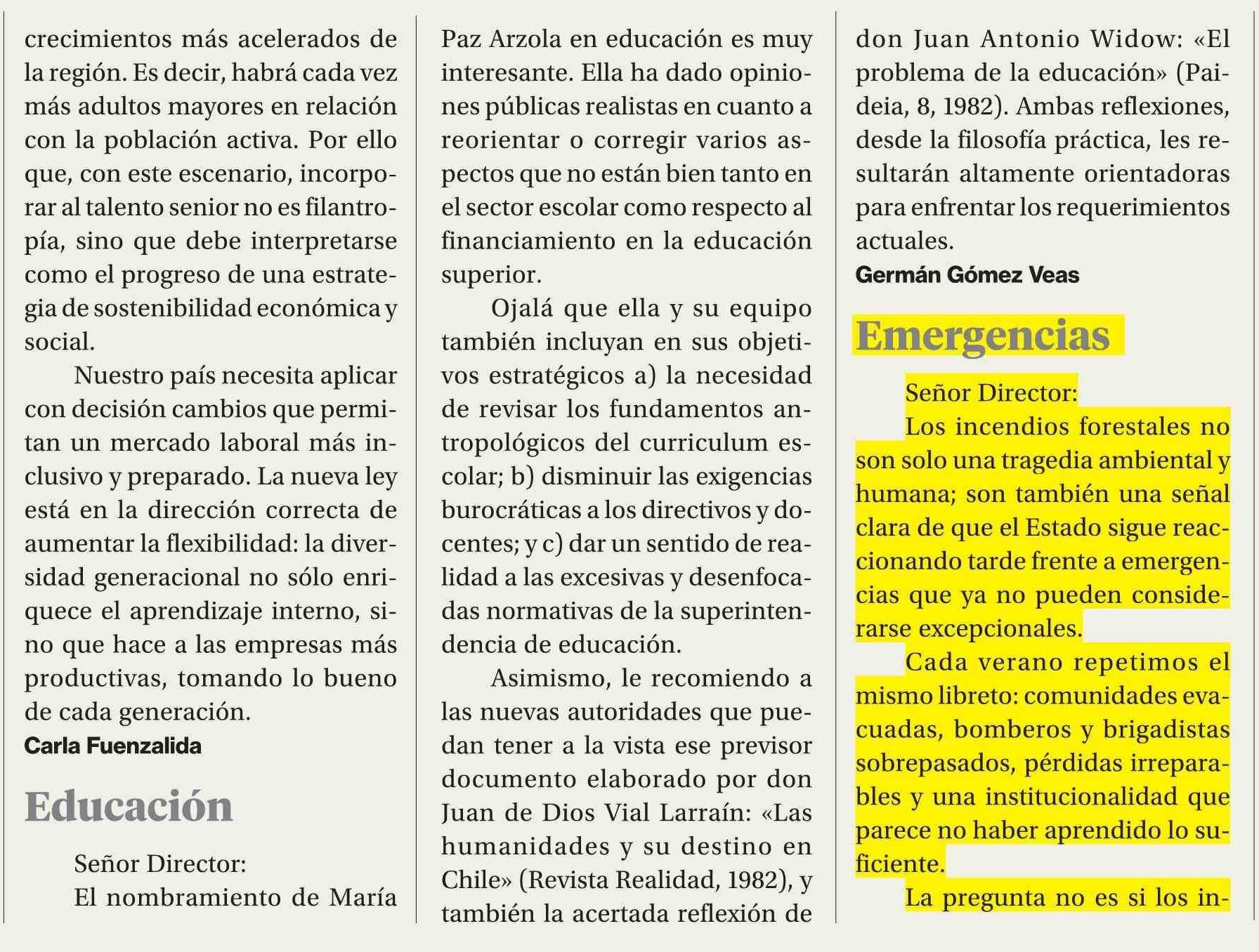 Cartas: Educación