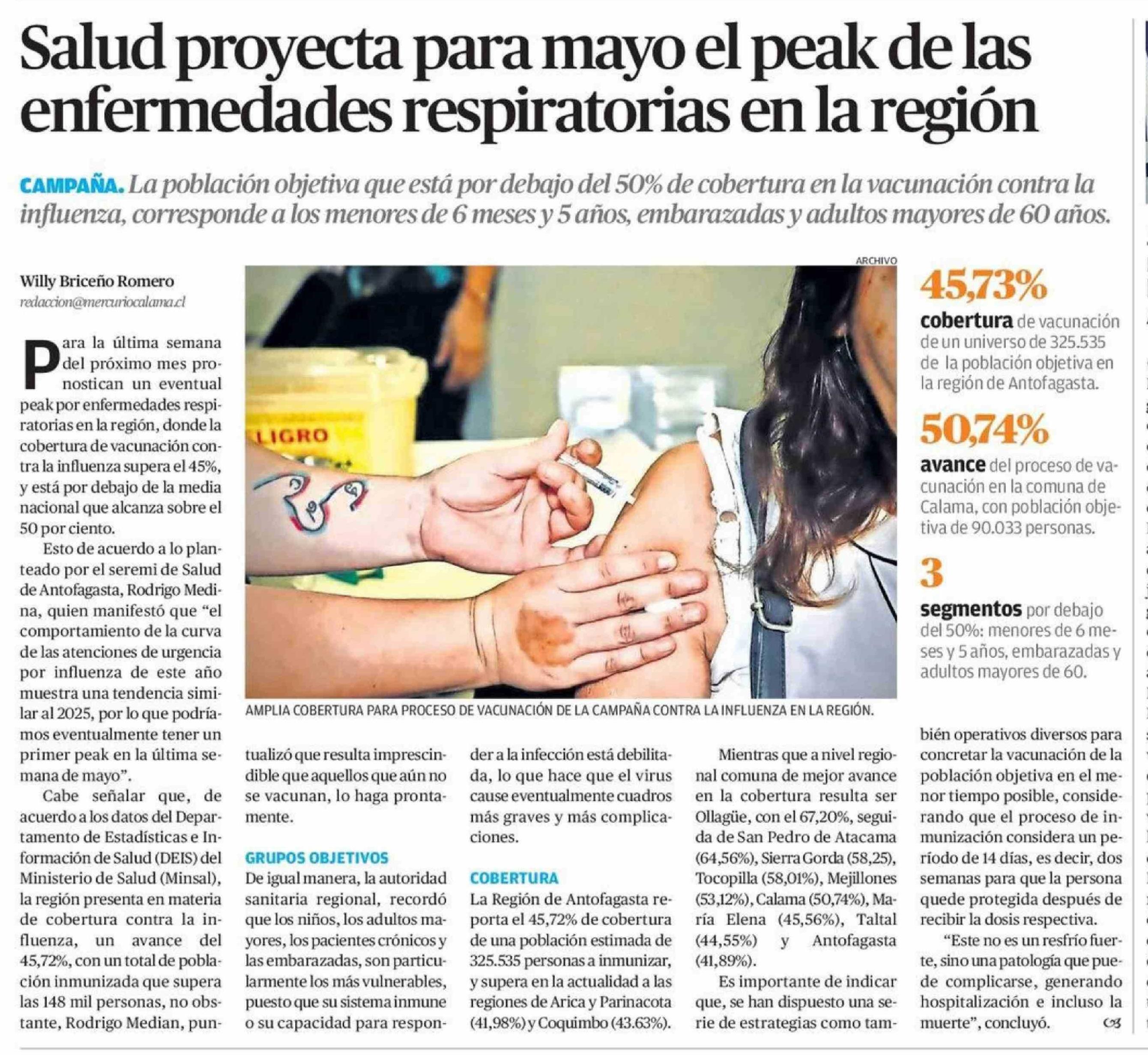 Salud proyecta para mayo el peak de las enfermedades respiratorias en la región 20-04-2026 El Mercurio de Antofagasta |