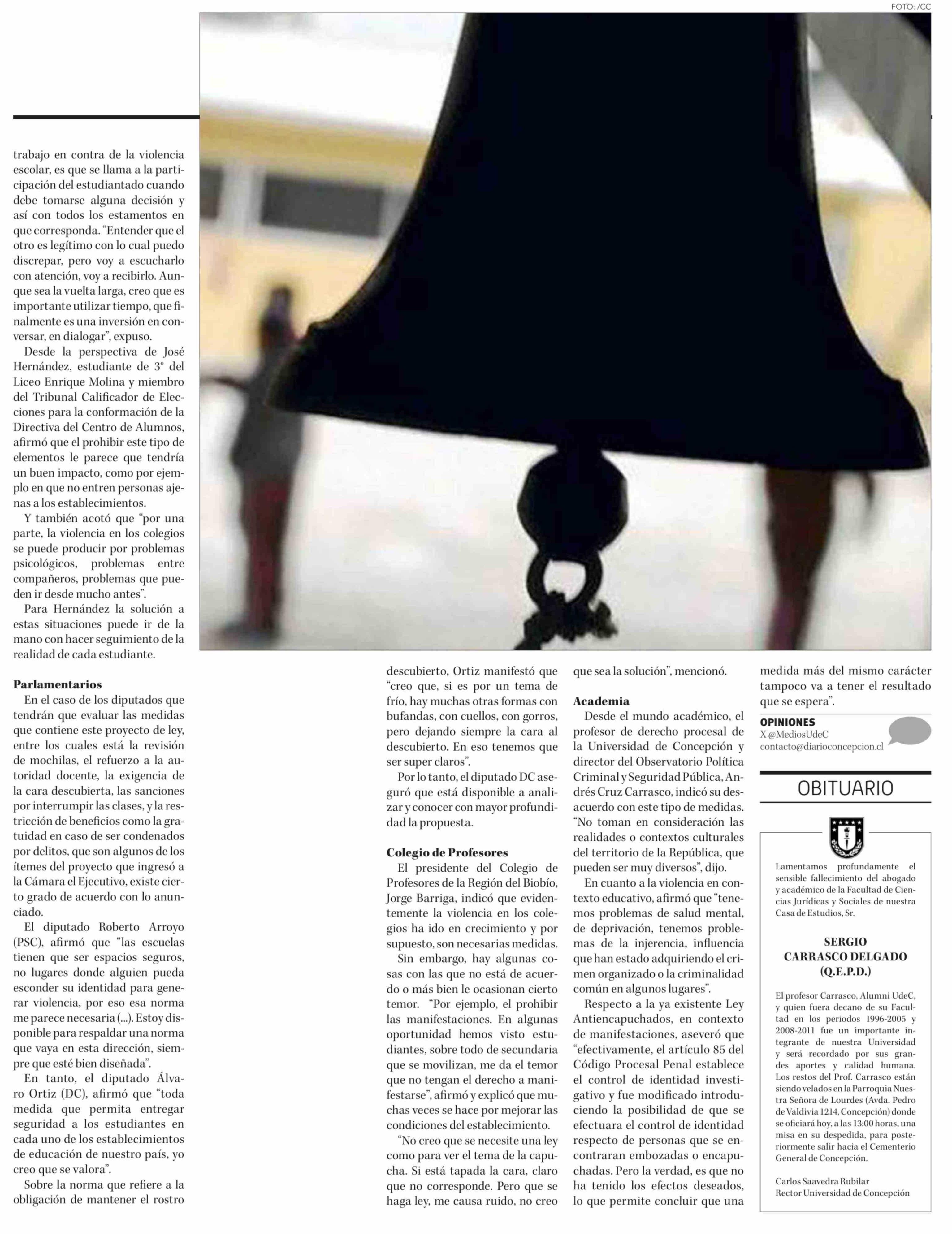 Título: Sin capuchas o pasamontañas: analizan proyecto de seguridad escolar firmado por el Presidente Kast