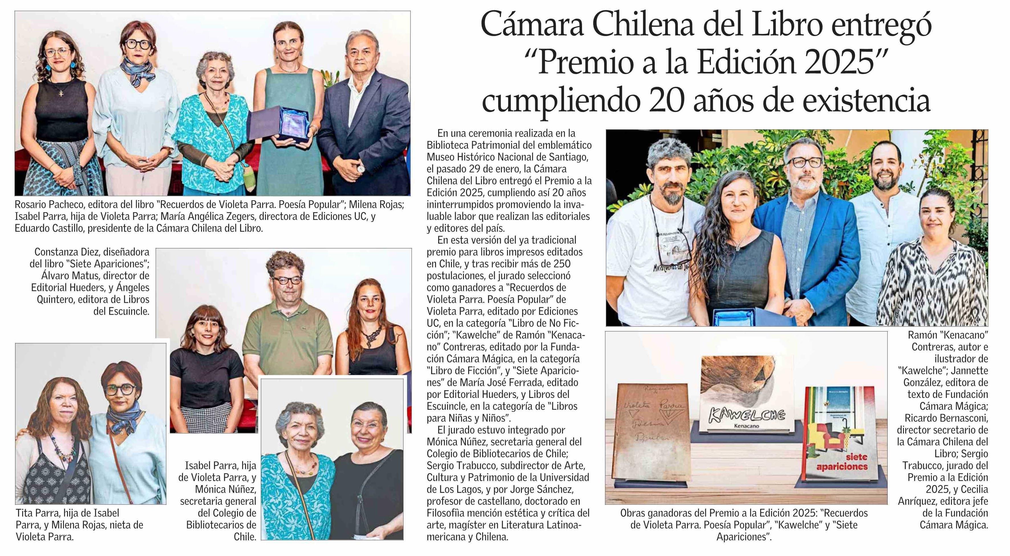 Título: Cámara Chilena del Libro entregó “Premio a la Edición 2025” cumpliendo 20 años de existencia