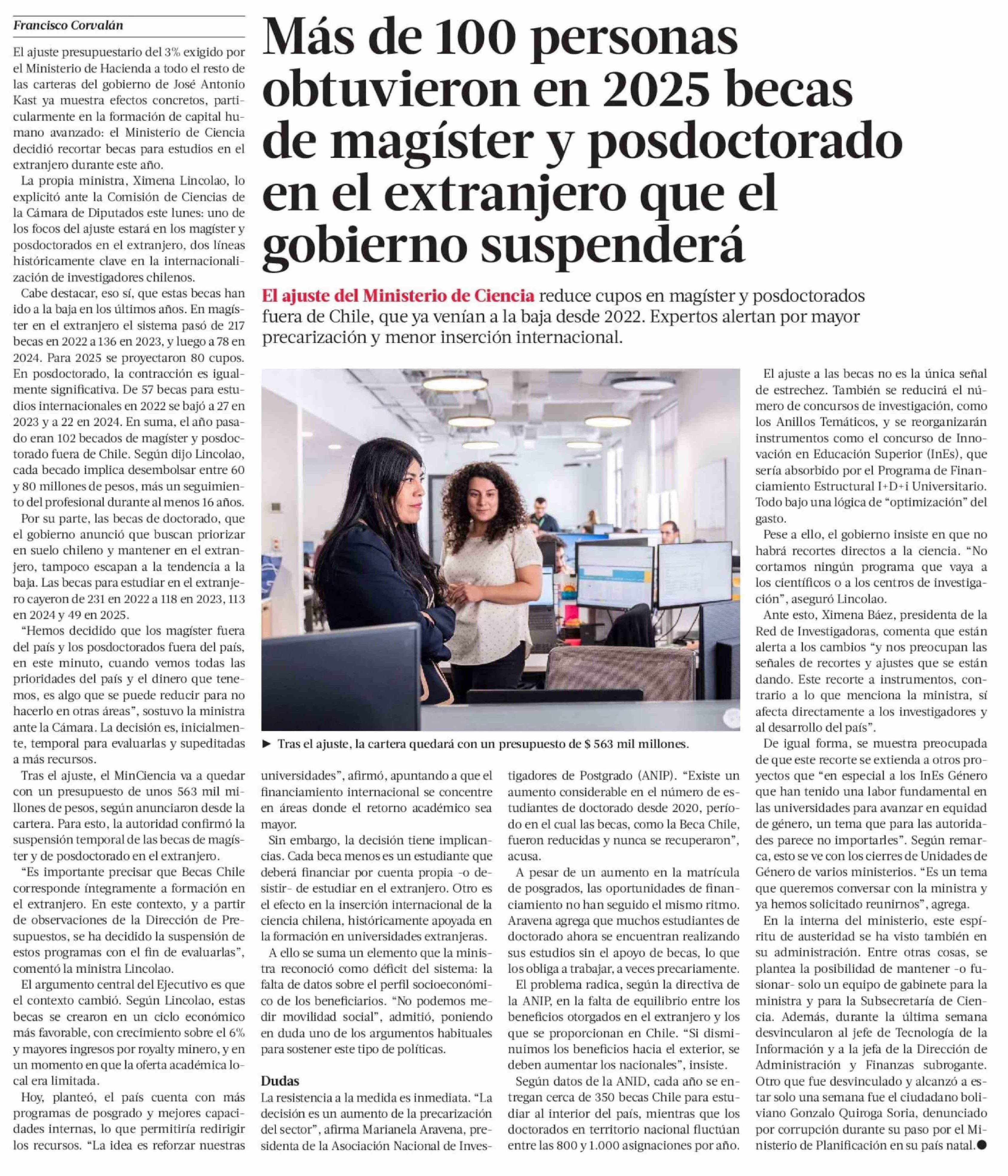Título: Más de 100 personas obtuvieron en 2025 becas de magíster y posdoctorado en el extranjero que el gobierno suspenderá