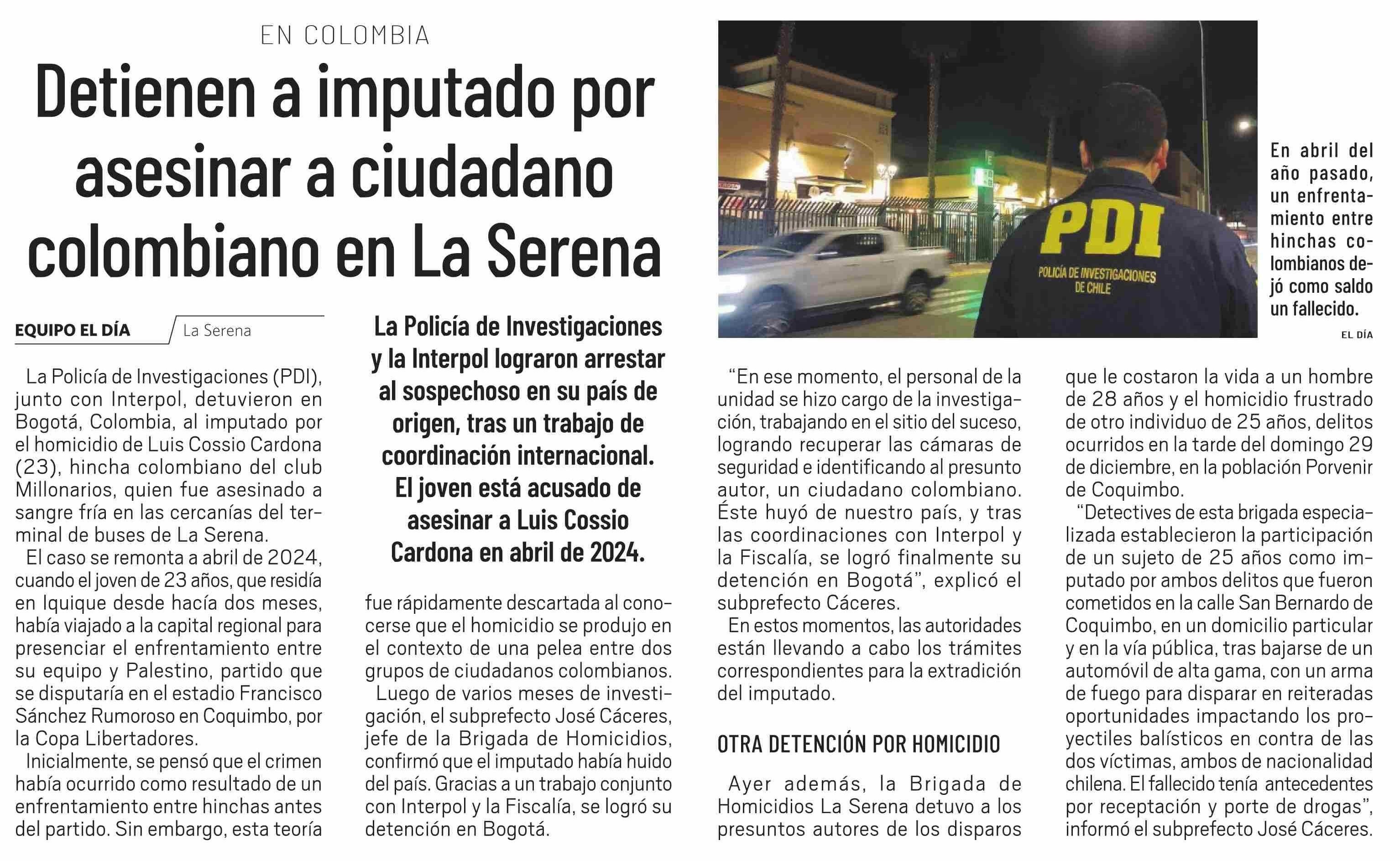 Detienen a imputado por asesinar a ciudadano colombiano en La Serena 10-01-2025 El Día |