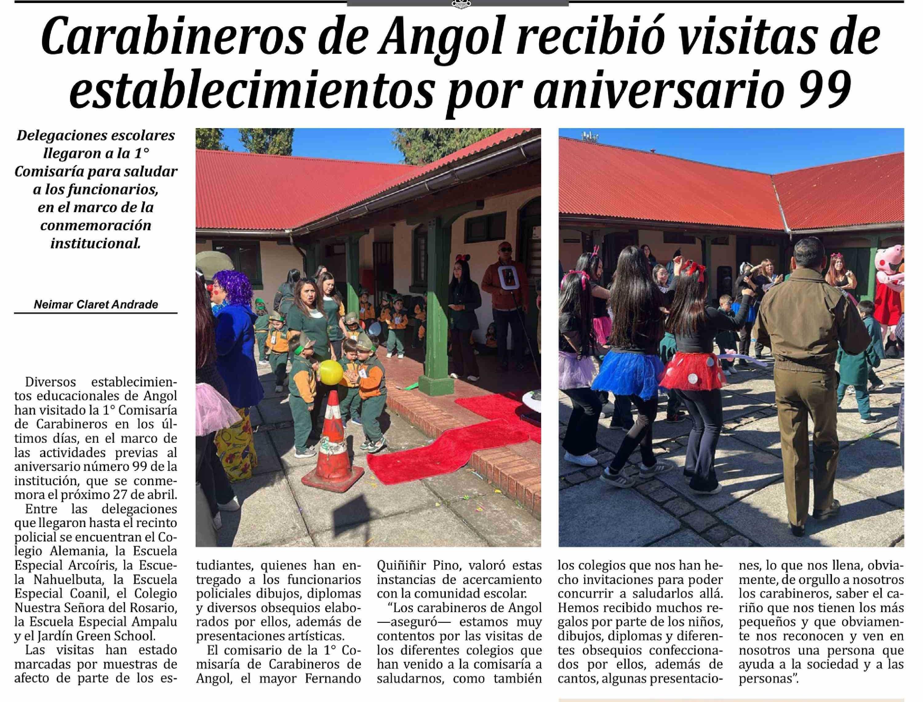 Carabineros de Angol recibió visitas de establecimientos por aniversario 99 25-04-2026 Las Noticias |