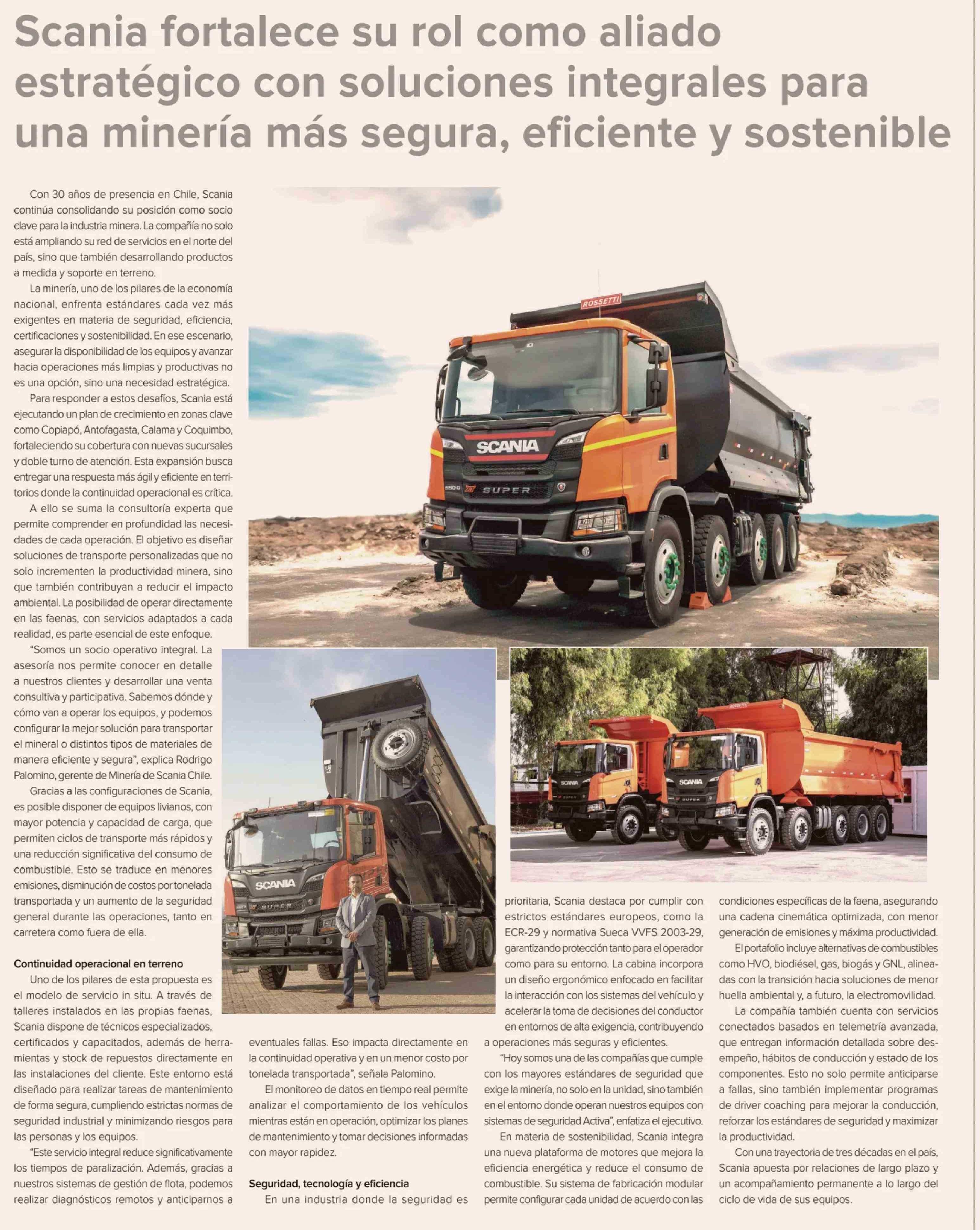 Título: Scania fortalece su rol como aliado estratégico con soluciones integrales para una minería más segura, eficiente y sostenible