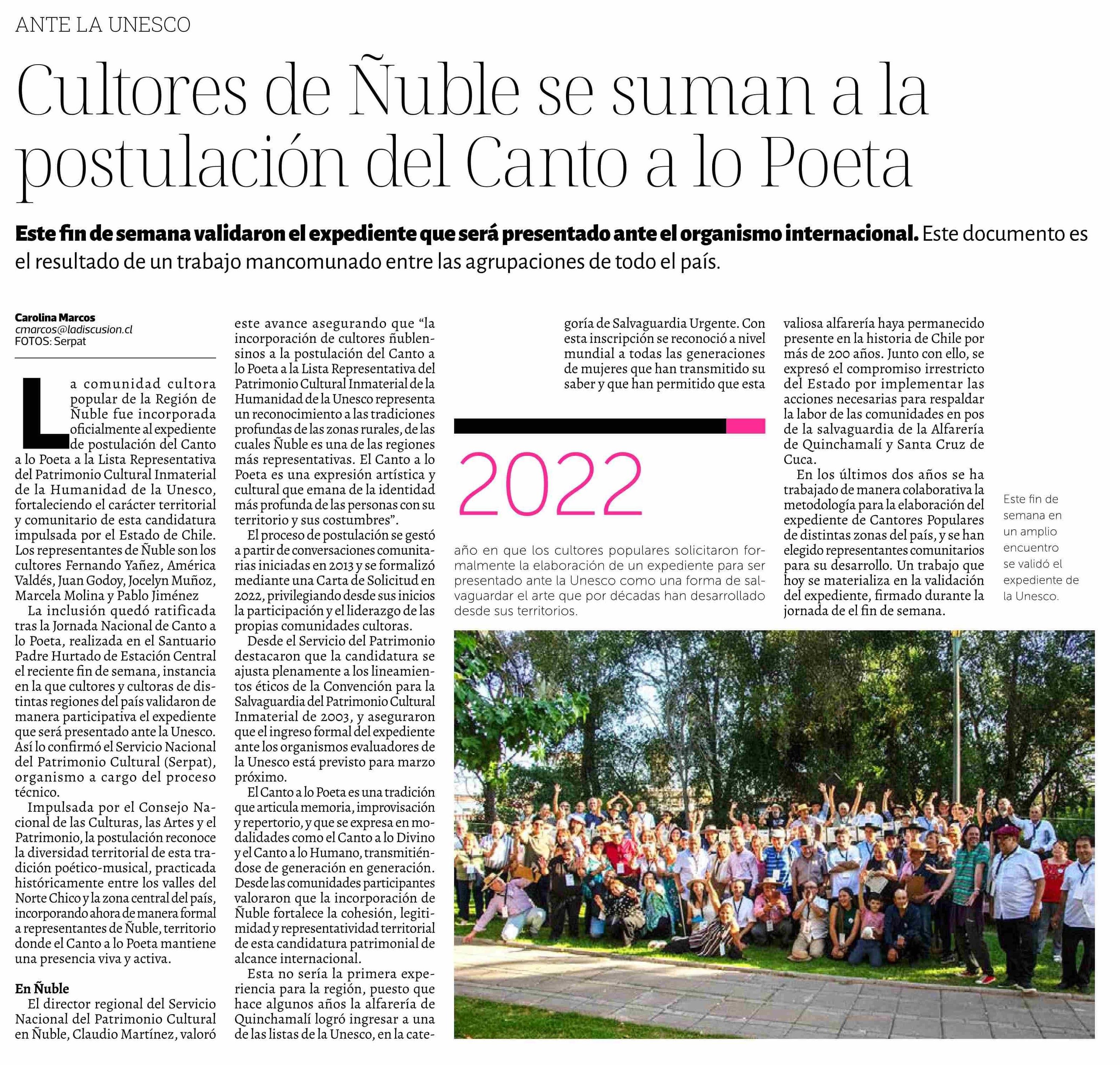 | Título: | Cultores de Ñuble se suman a la postulación del Canto a lo Poeta |