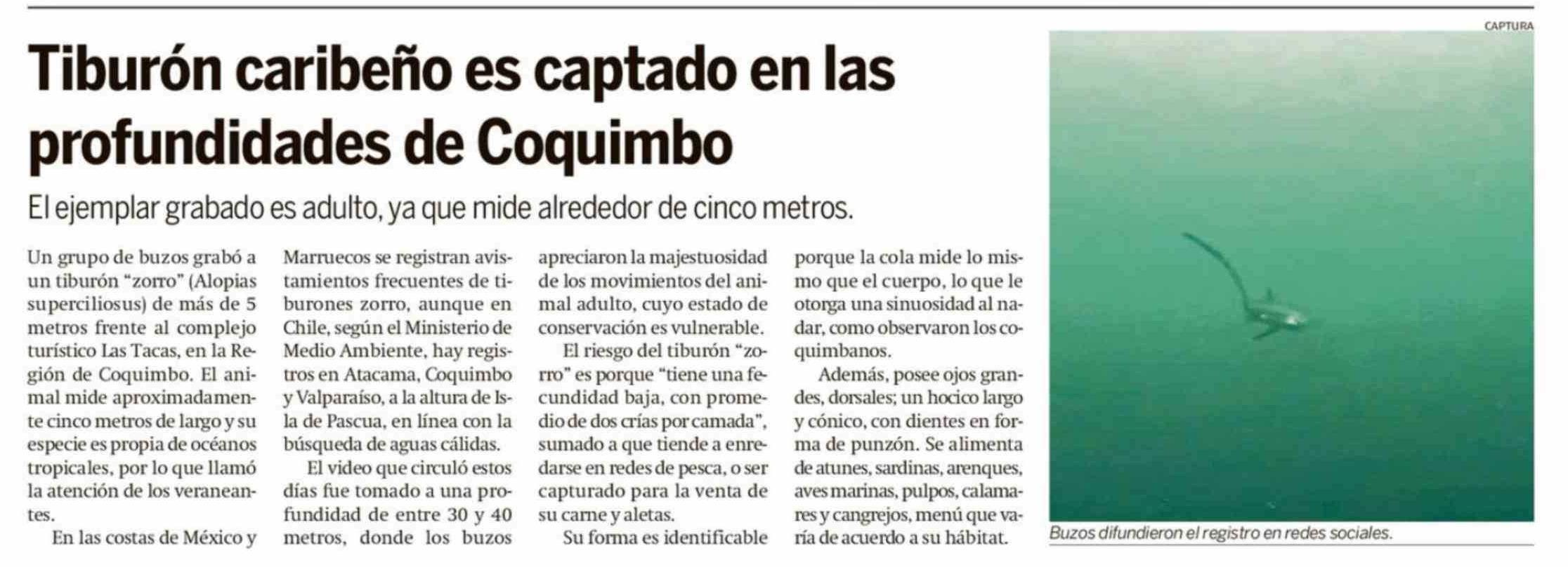 | Título: | Tiburón caribeño es captado en las profundidades de Coquimbo |
