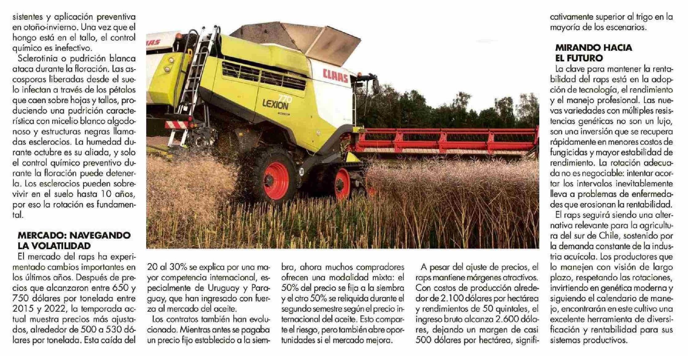 Manejo técnico del cultivo de raps: claves para maximizar rentabilidad en el sur de Chile 26-01-2026 Campo Sureño - Regiones IX, X y XIV |