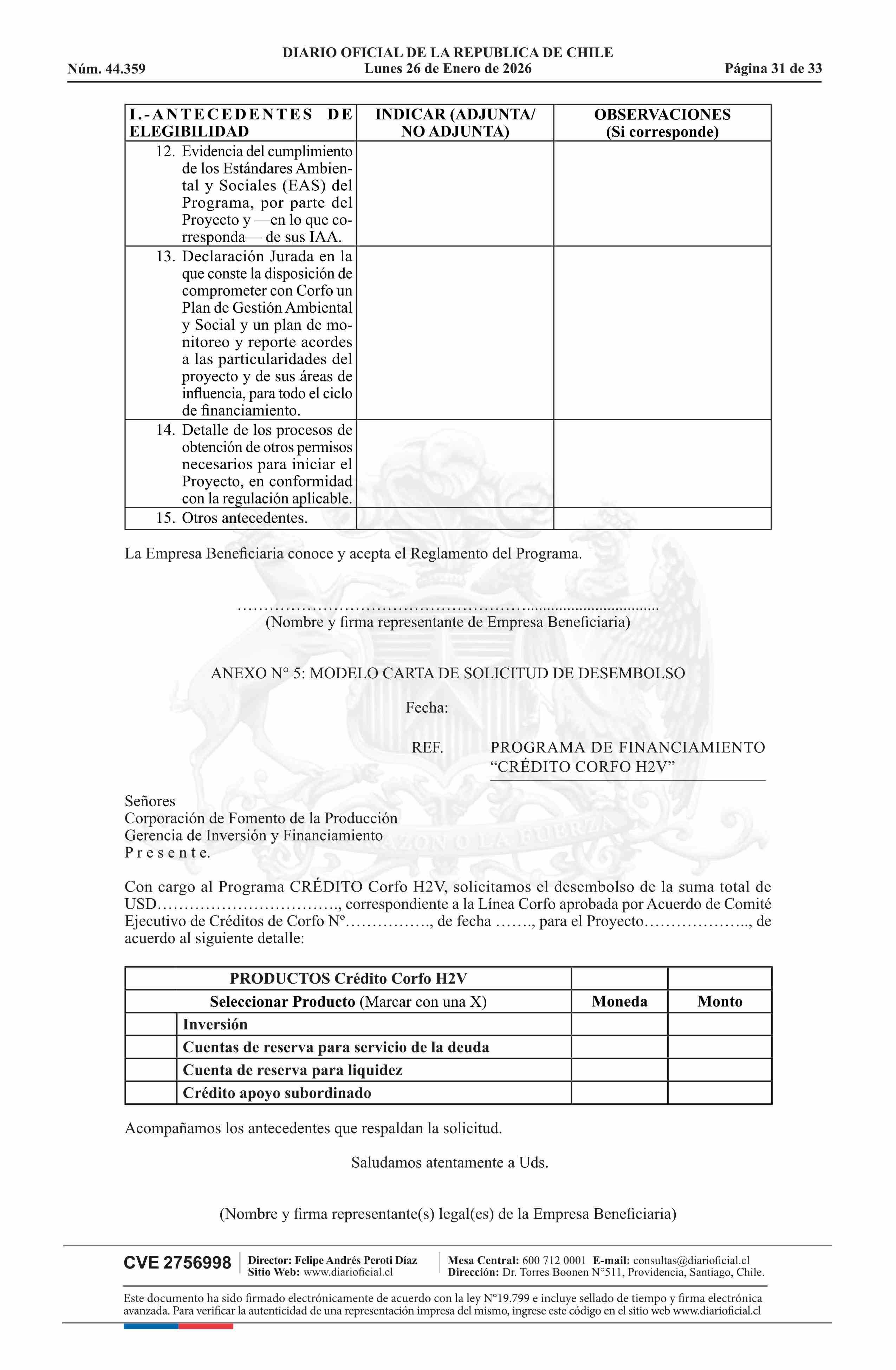 Resolución número 71, de 2025.- Ejecuta Acuerdo N° 29.467, del Comité Ejecutivo de Créditos de Corfo, adoptado en Sesión N° 10-2025, que aprueba la creación del programa denominado Programa Crédito Corfo H2V y aprueba reglamento de dicho programa