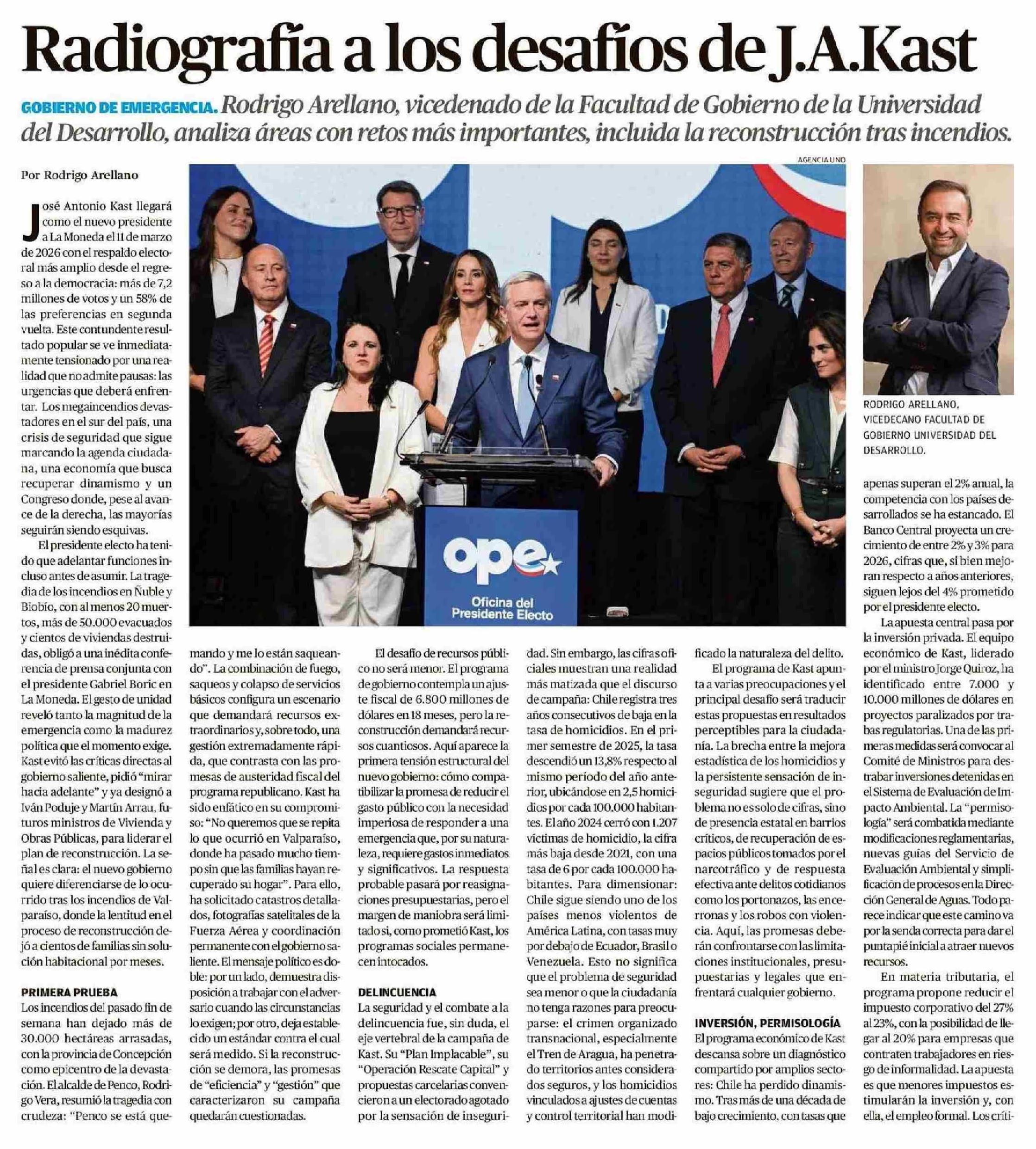 Radiografia a los desafíos de J.A.Kast 25-01-2026 Diario Austral Región de Los Ríos |