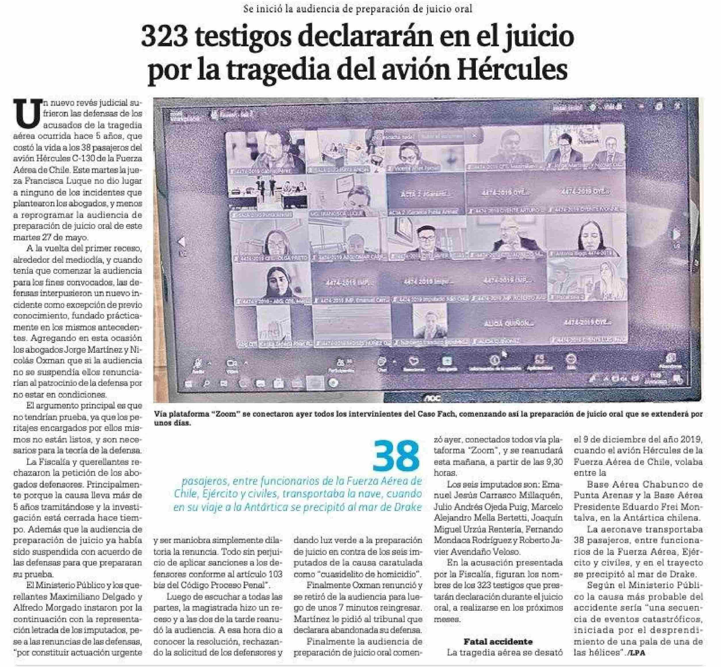 323 testigos declararán en el juicio por la tragedia del avión Hércules 28-05-2025 La Prensa Austral |