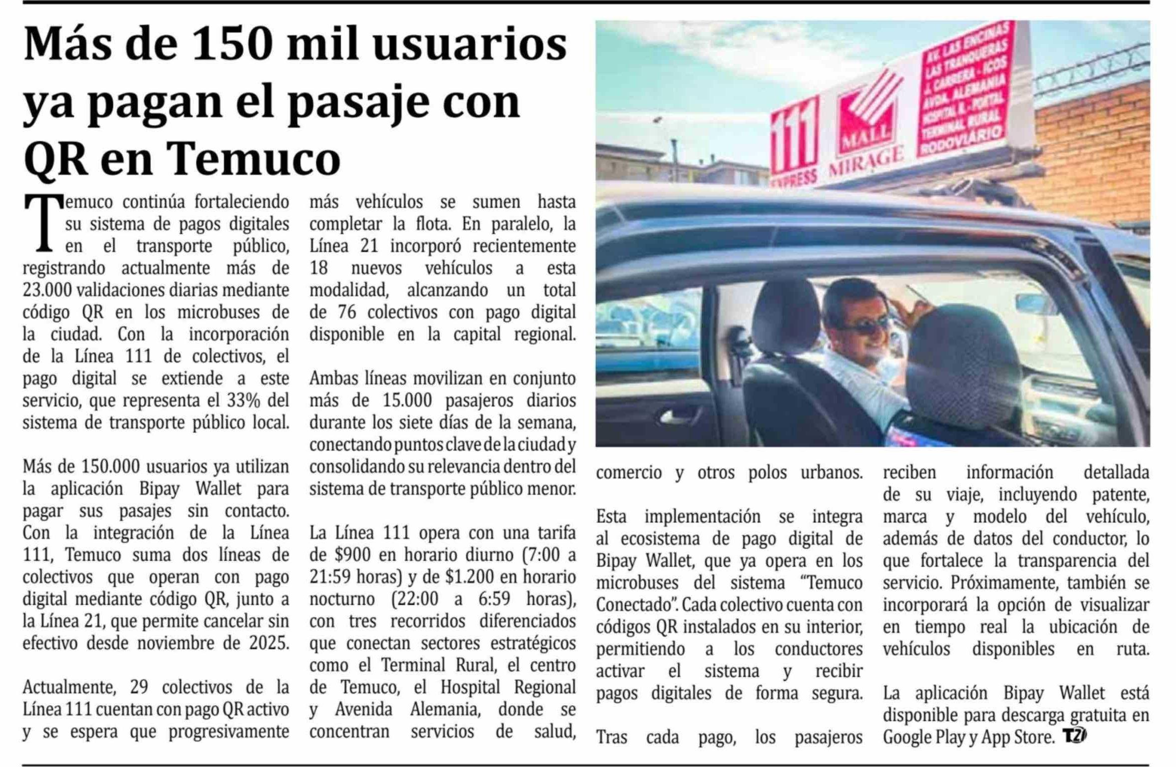 Título: Más de 150 mil usuarios ya pagan el pasaje con QR en Temuco