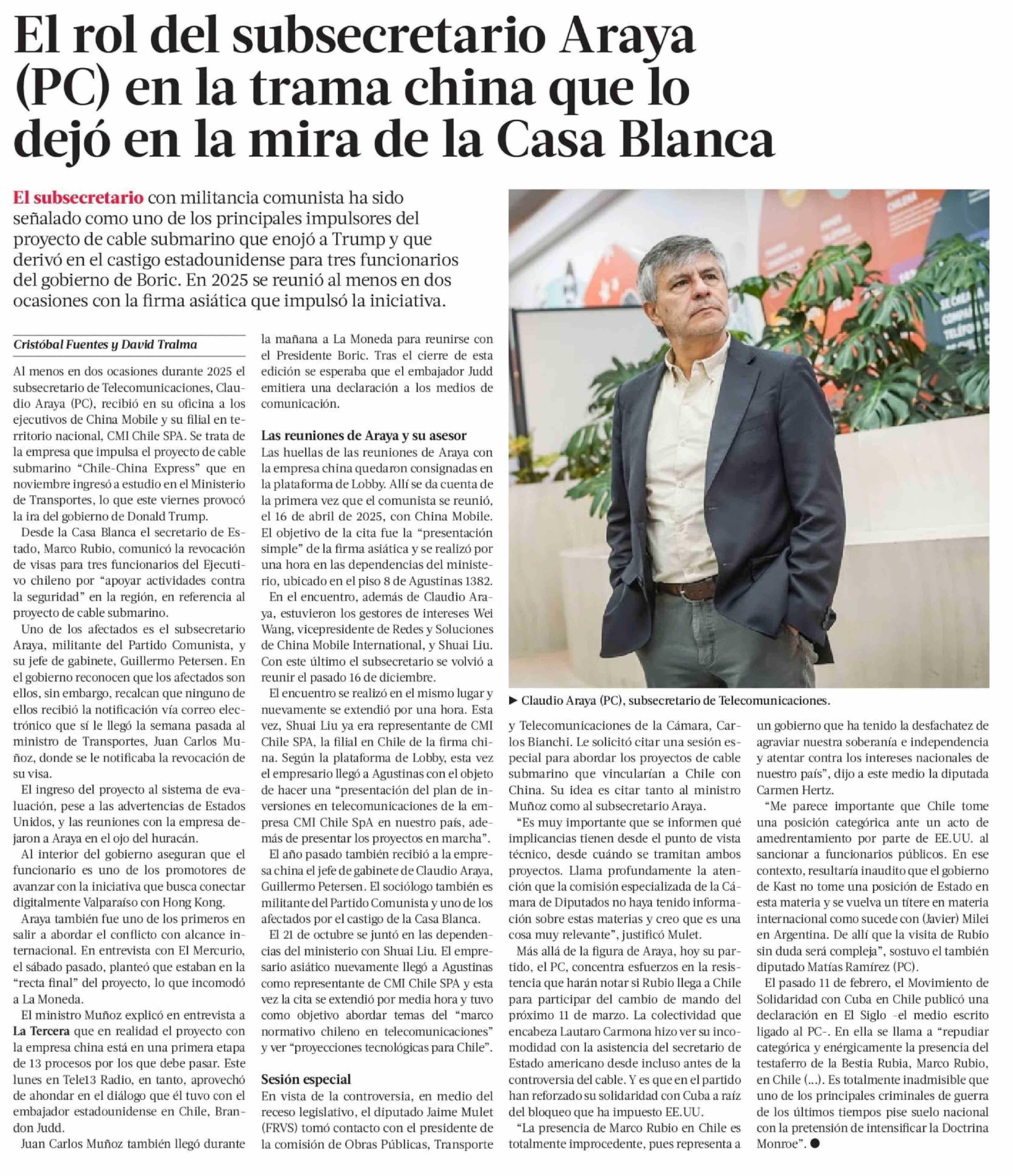 Título: El rol del subsecretario Araya (PC) en la trama china que lo dejó en la mira de la Casa Blanca