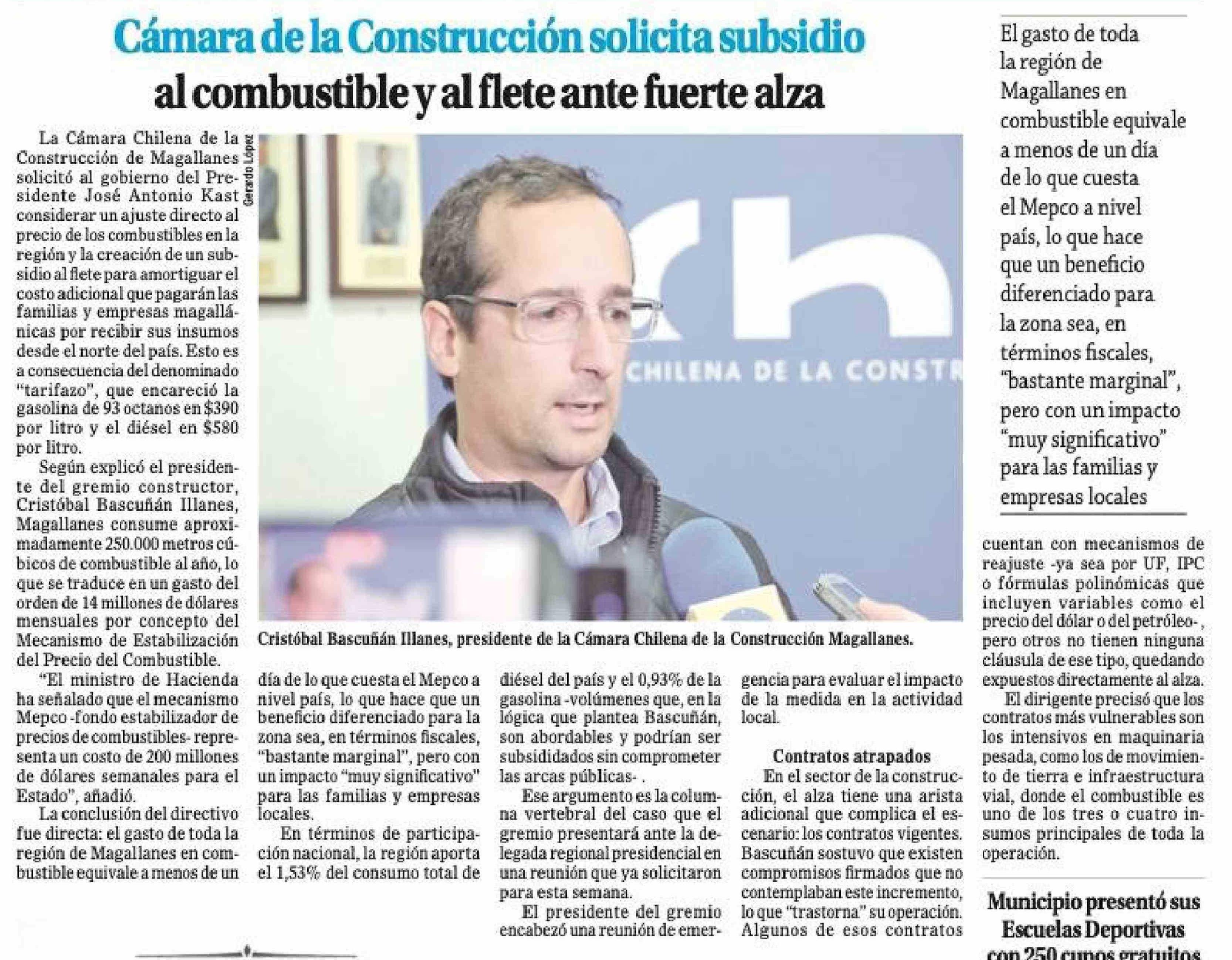 Título: Cámara de la Construcción solicita subsidio al combustible y al flete ante fuerte alza