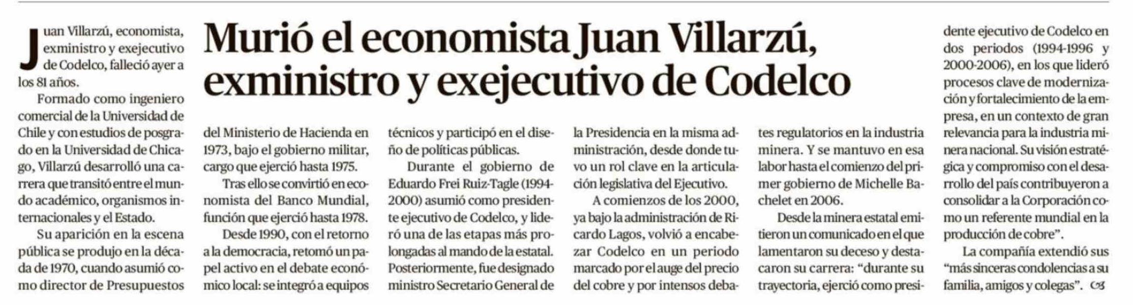 Título: Murió el economista Juan Villarzú, exministro y exejecutivo de Codelco