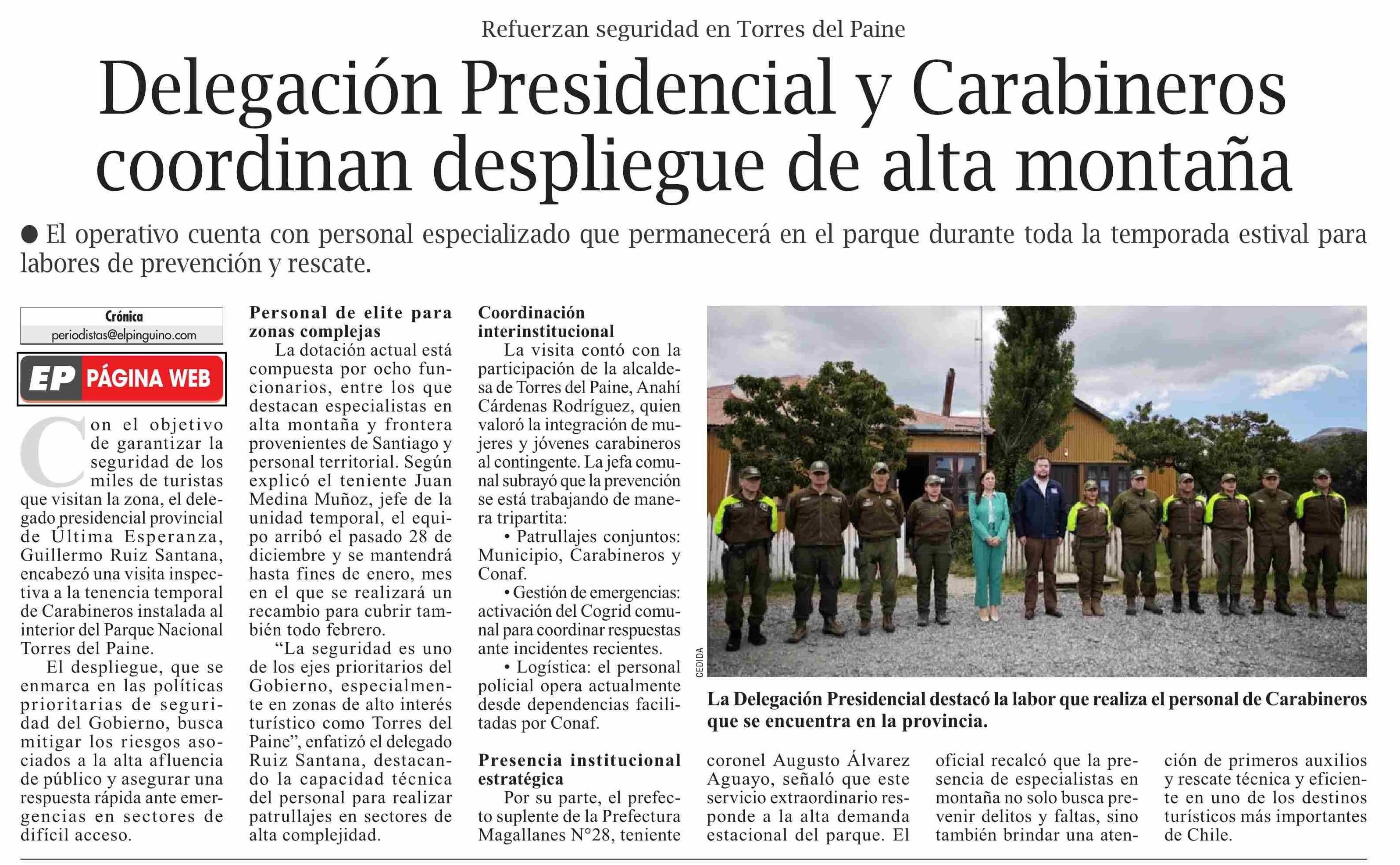 Delegación Presidencial y Carabineros coordinan despliegue de alta montaña 07-01-2026 El Pingüino |