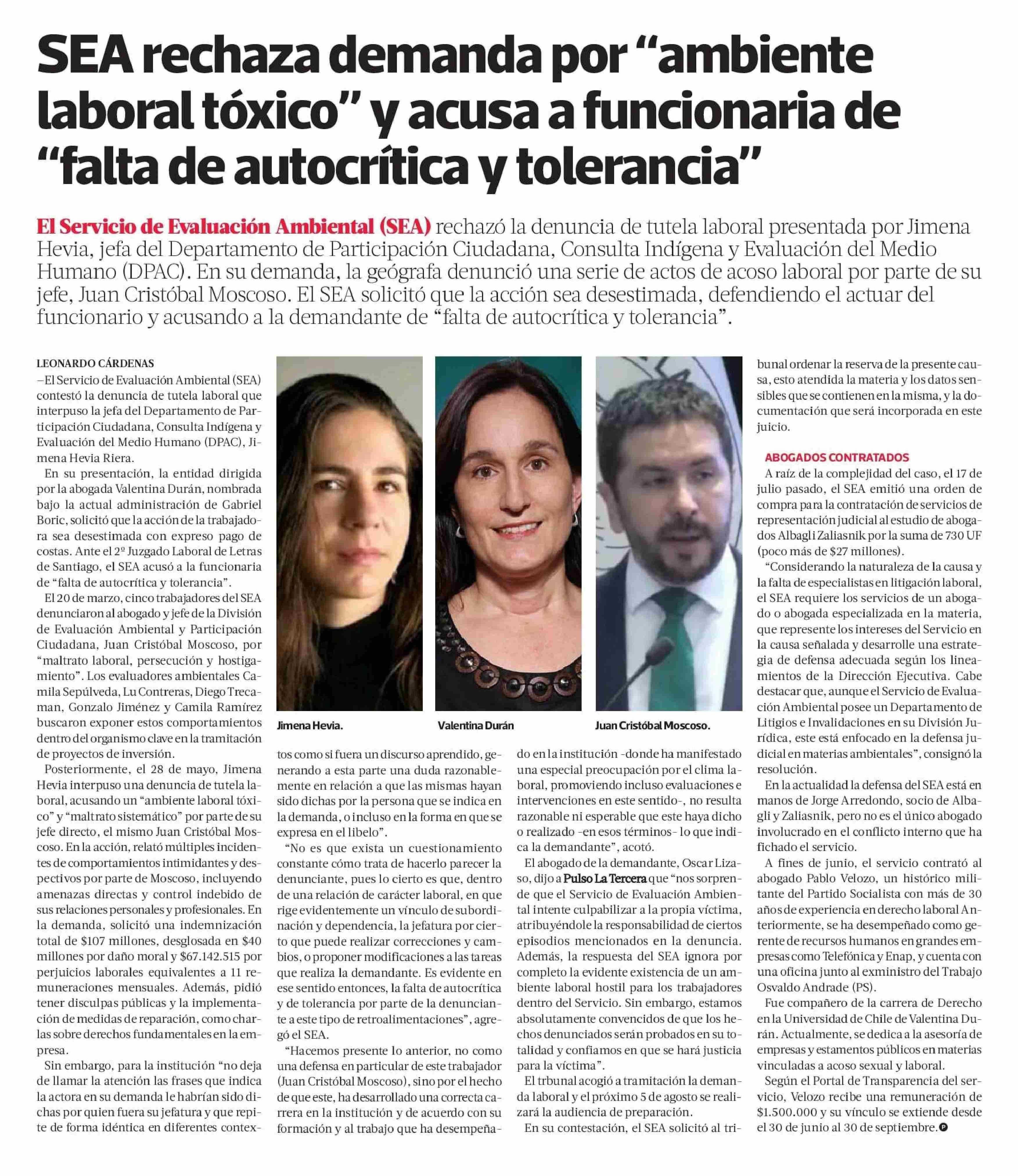 Título: SEA rechaza demanda por “ambiente laboral tóxico” y acusa a funcionaria de “falta de autocrítica y tolerancia”