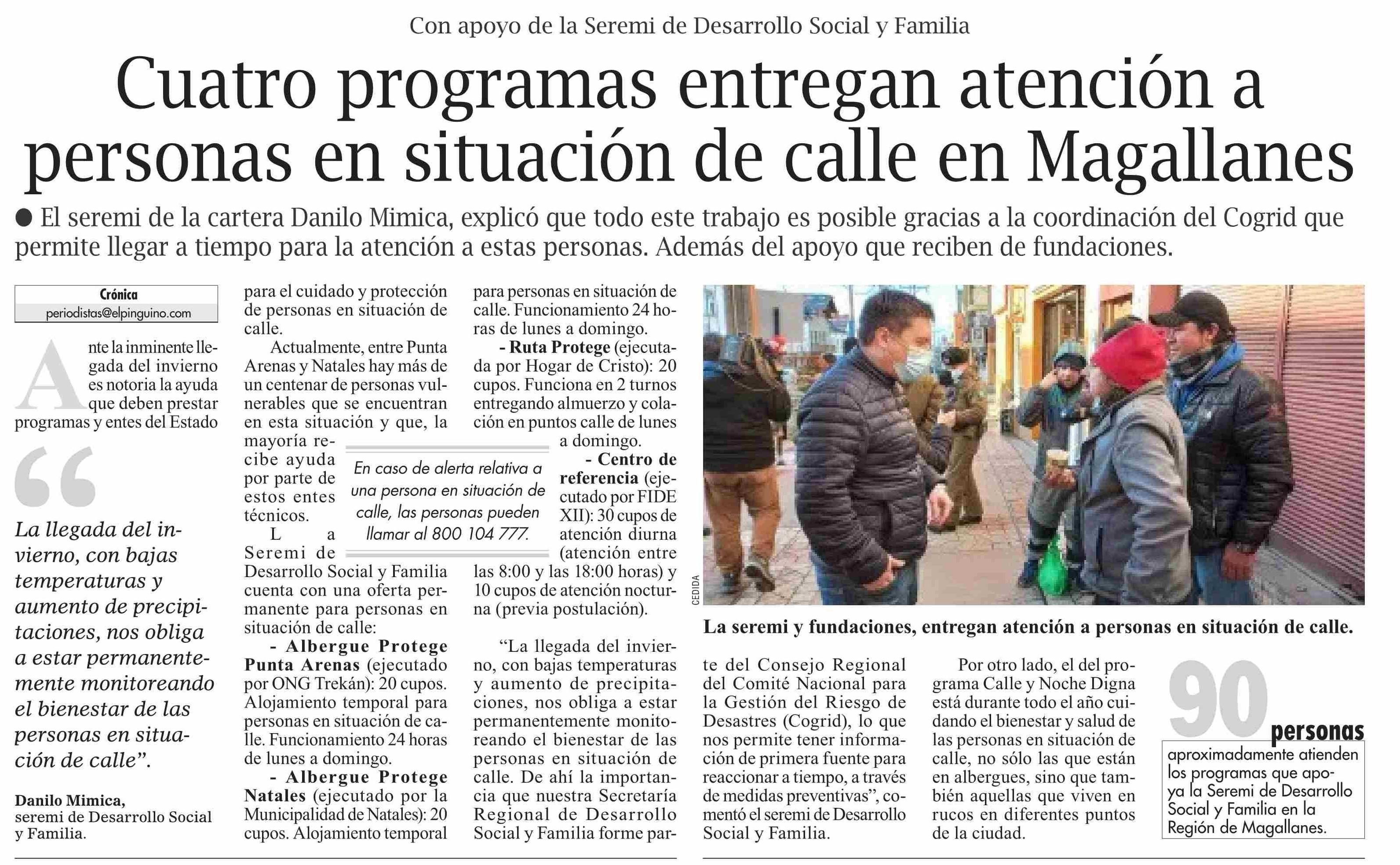 Cuatro programas entregan atención a personas en situación de calle en Magallanes 13-06-2025 El Pingüino |