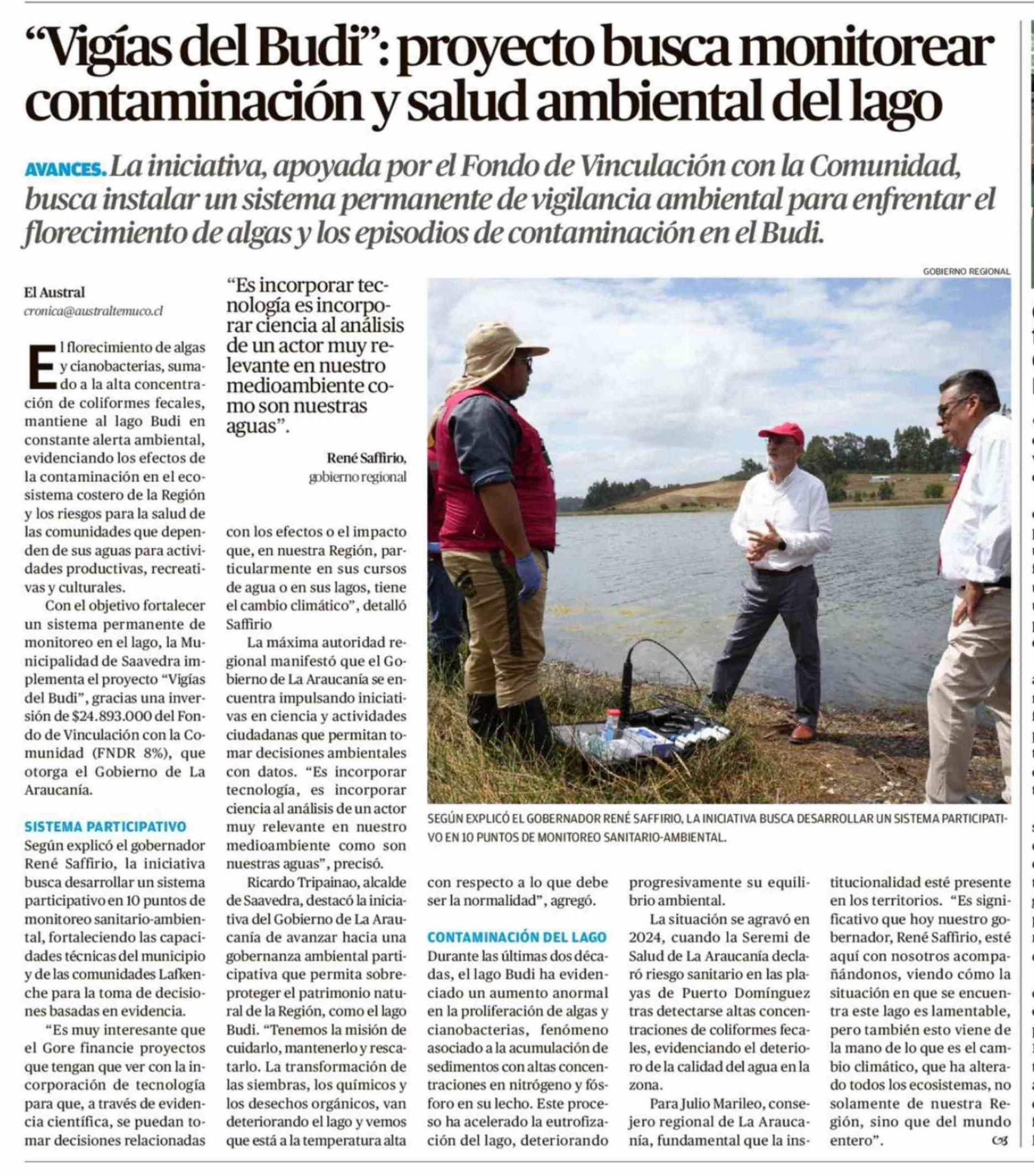Título: "Vigías del Budi": proyecto busca monitorear contaminación y salud ambiental del lago