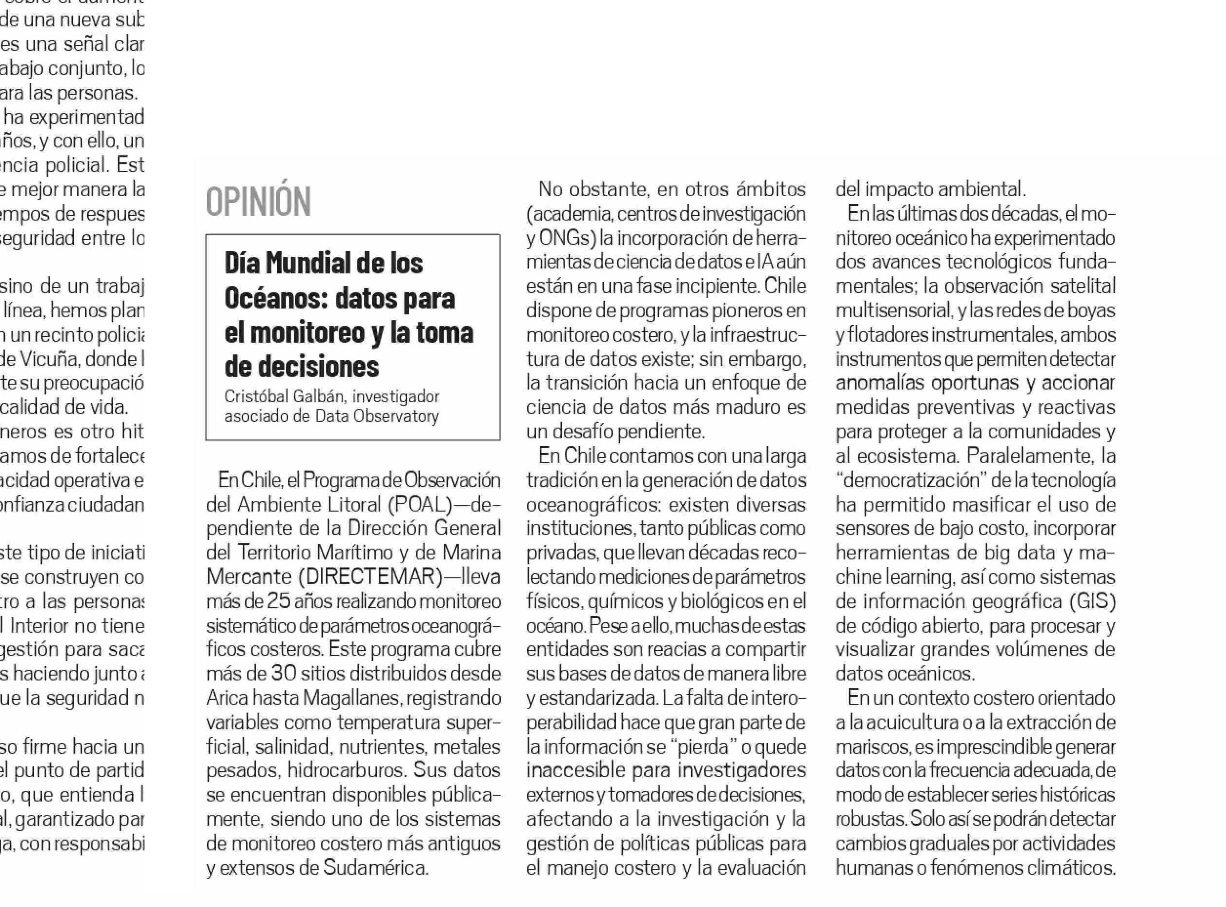 Día Mundial de los Océanos: datos para el monitoreo y la toma de decisiones 08-06-2025 El Día |