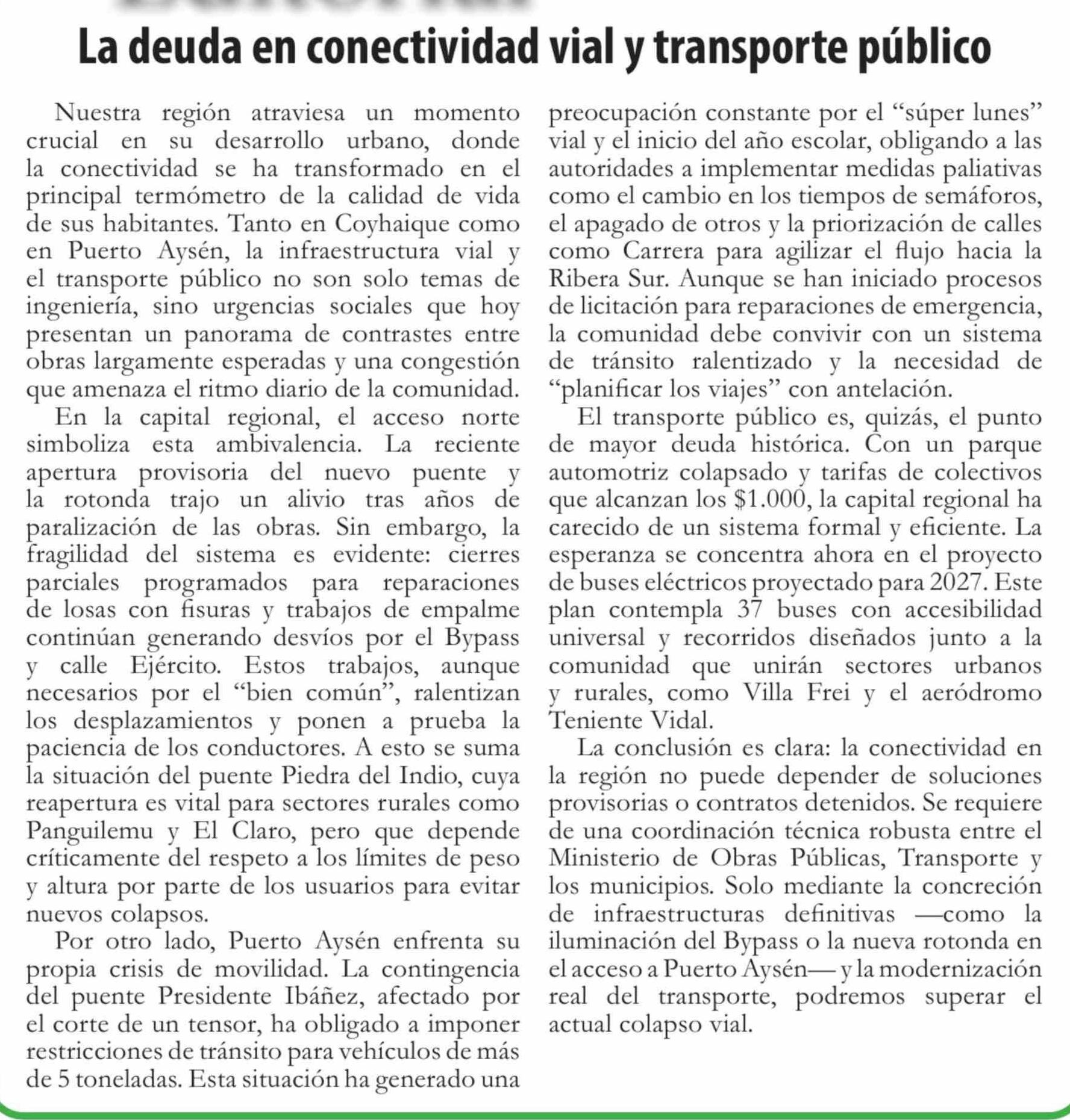 Editorial: La deuda en conectividad vial y transporte público 21-02-2026 El Divisadero |