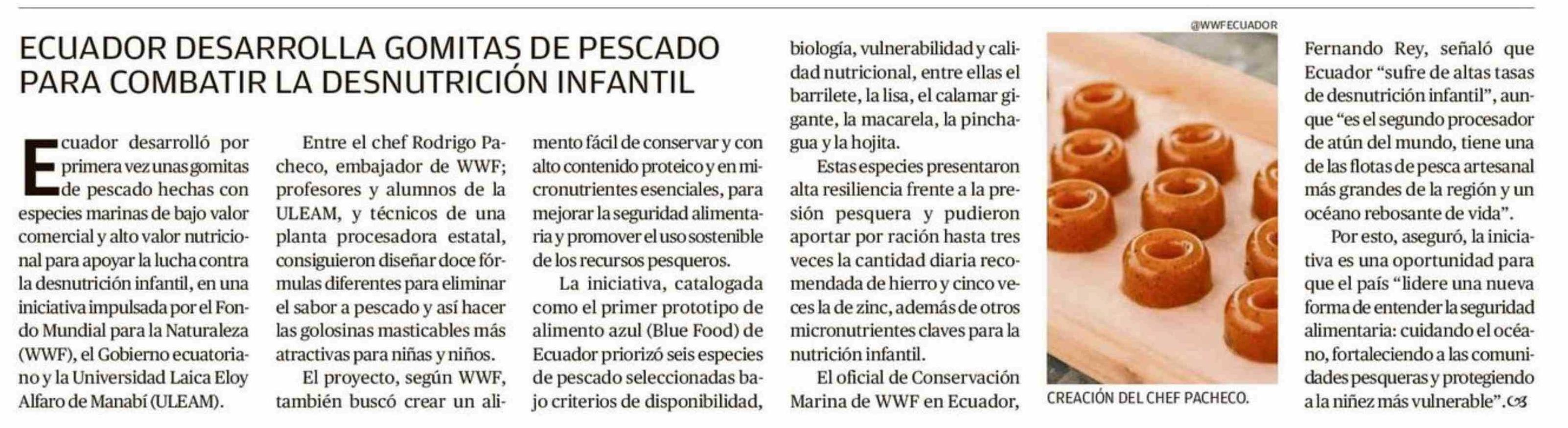 | Título: | ECUADOR DESARROLLA GOMITAS DE PESCADO PARA COMBATIR LA DESNUTRICIÓN INFANTIL |