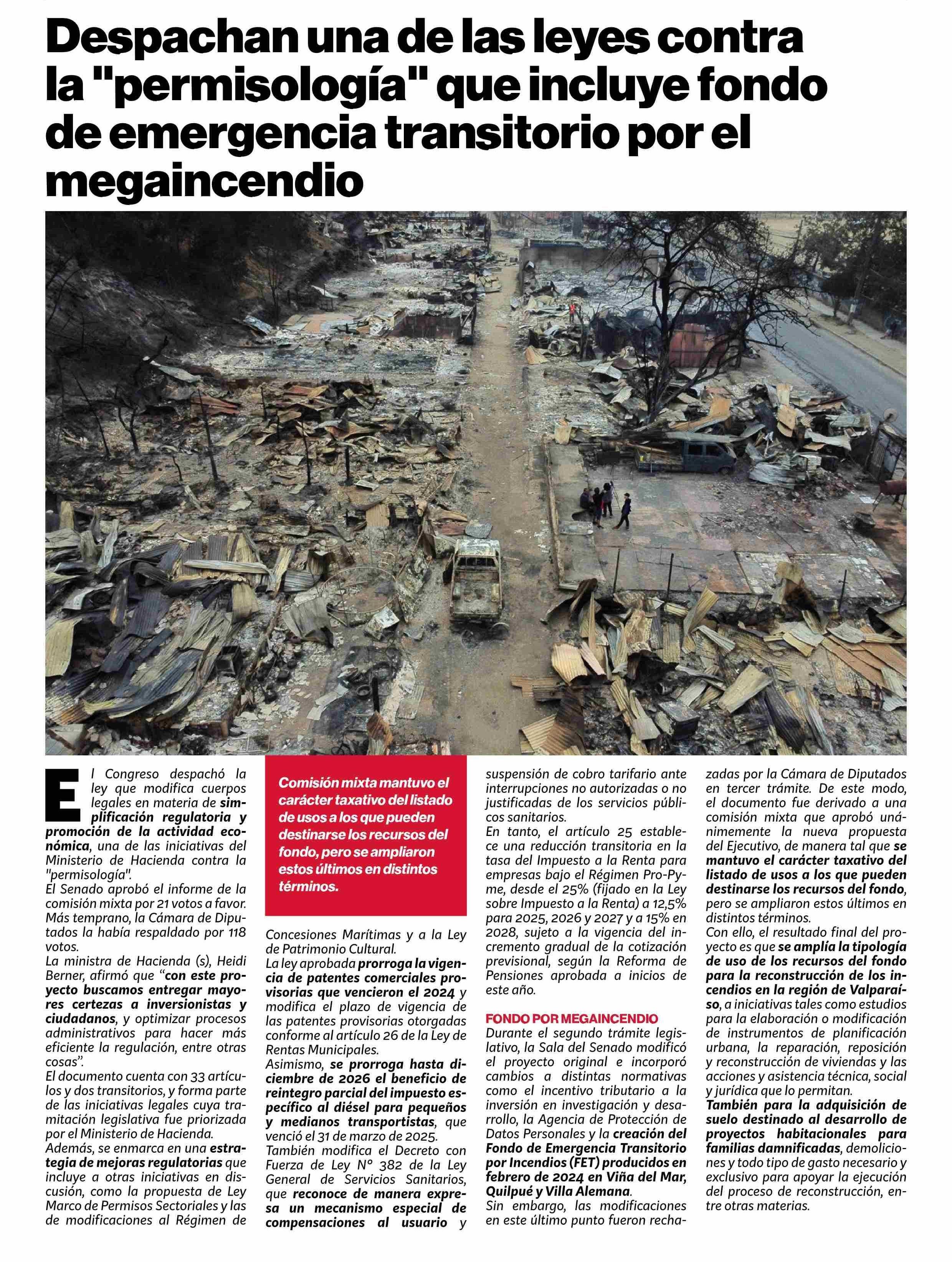 Título: Despachan una de las leyes contra la "permisología"” que incluye fondo de emergencia transitorio por el megaincendio