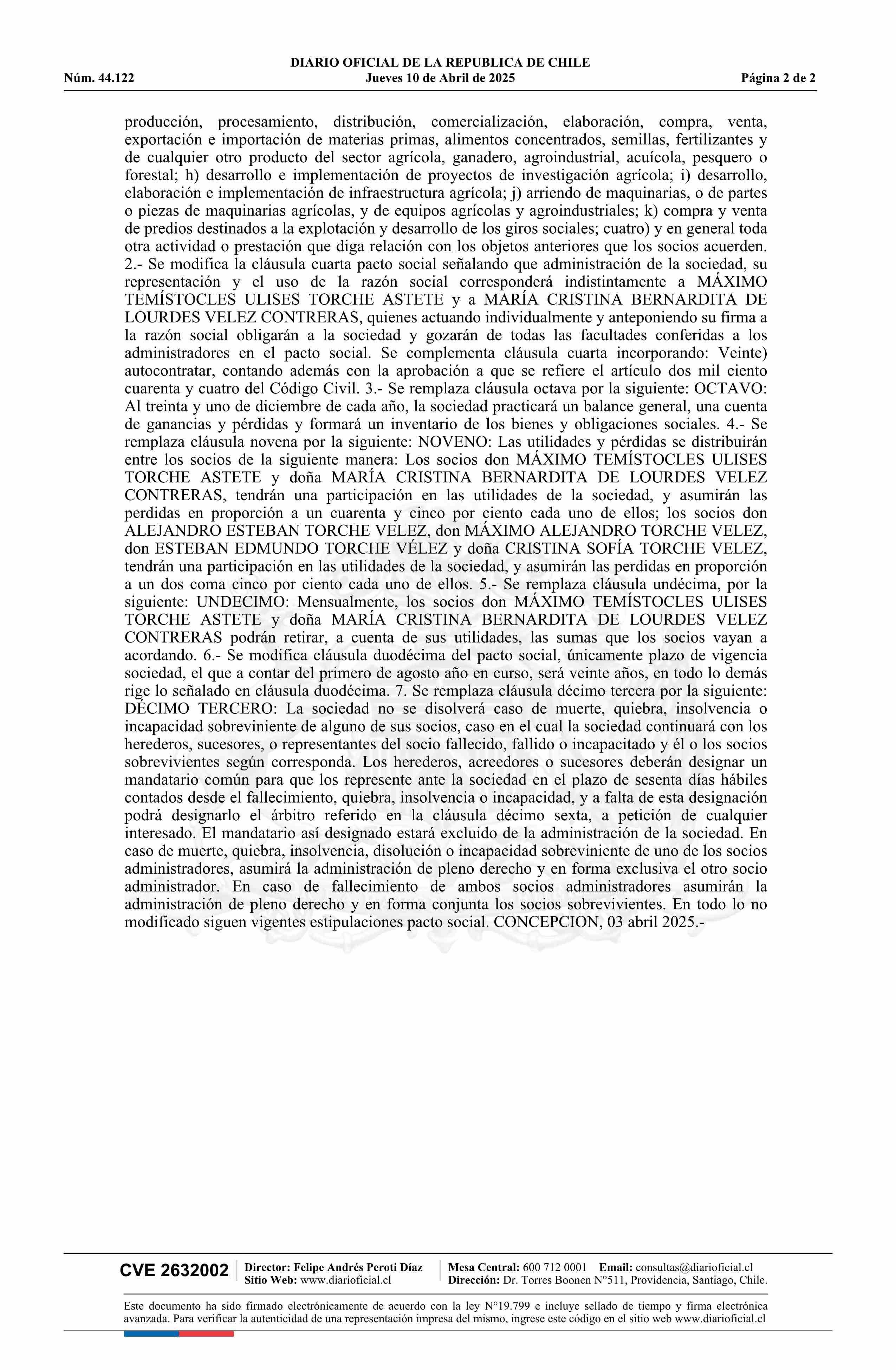 DISTRIBUIDORA E INVERSIONES M.T.V. LIMITADA 78.842.830-8 10-04-2025 Diario Oficial Edición Electrónica |
