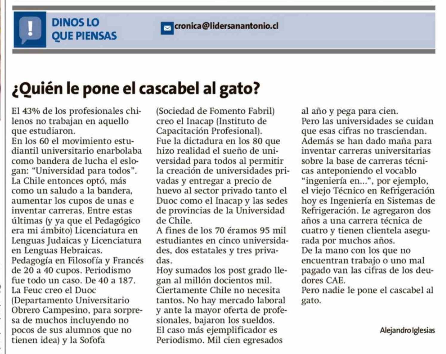 | Título: | Cartas: ¿Quién le pone el cascabel al gato? |