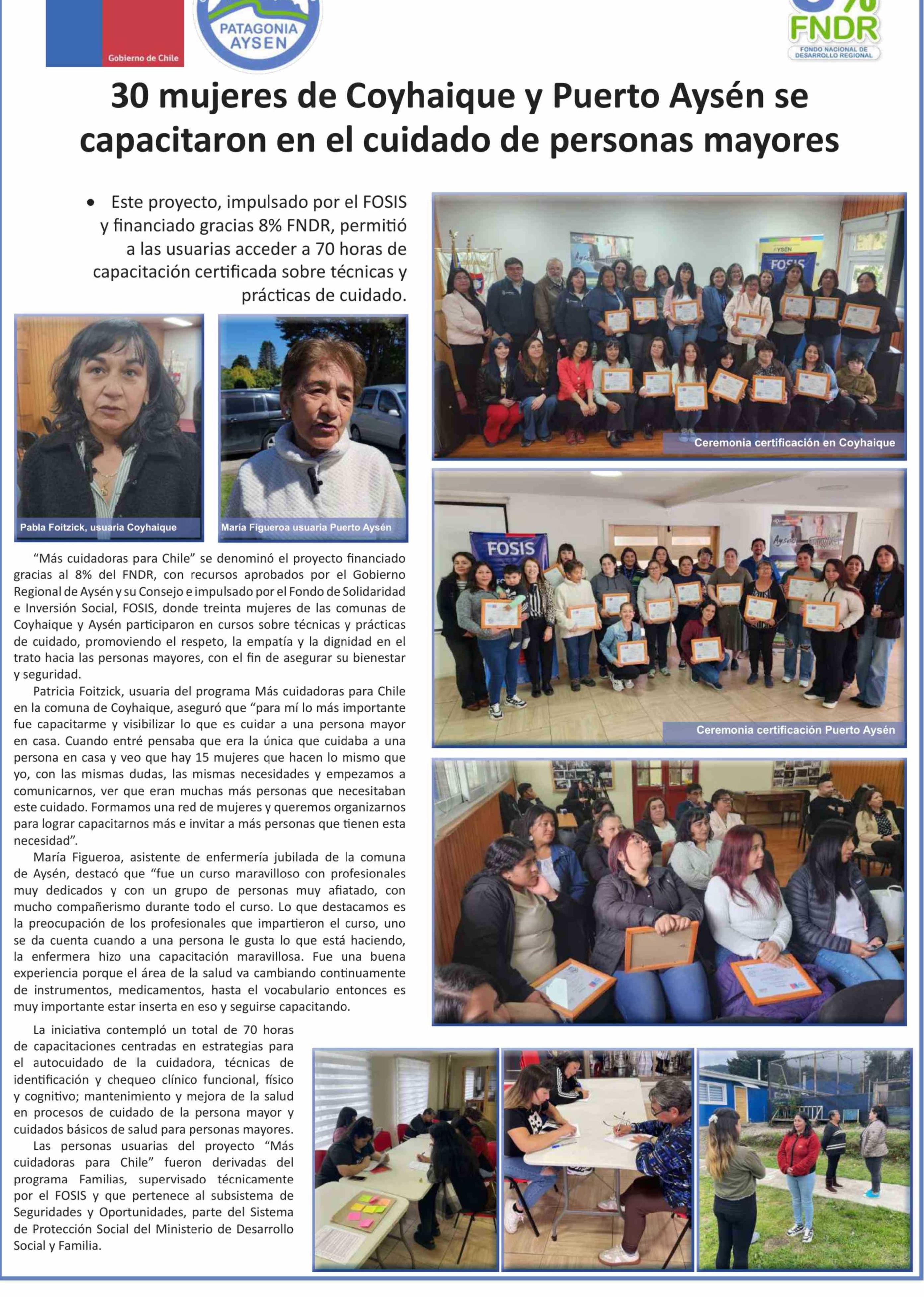 Título: 30 Mujeres de Coyhaique y Puerto Aysén se capacitaron en el cuidado de personas mayores